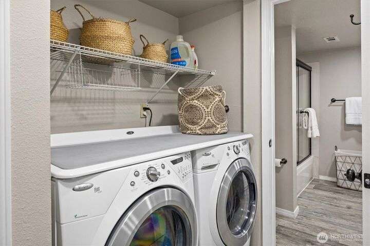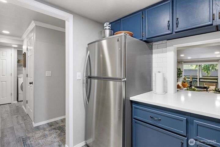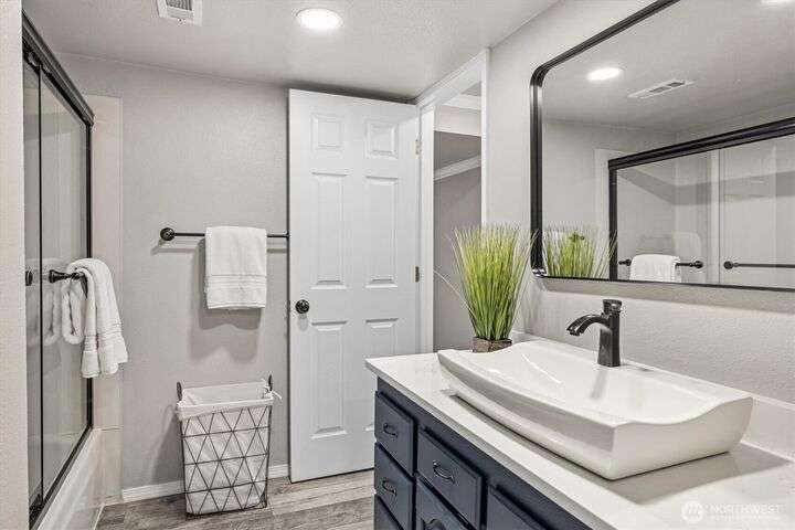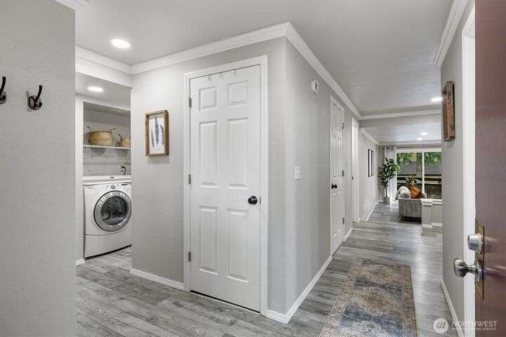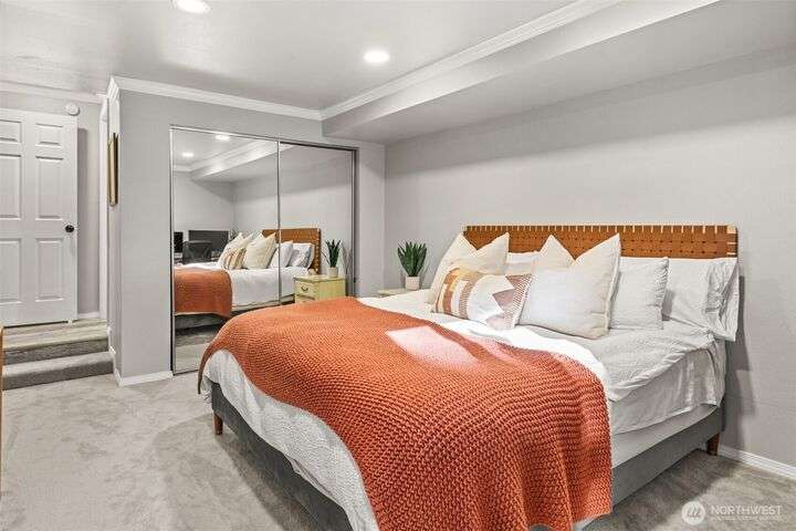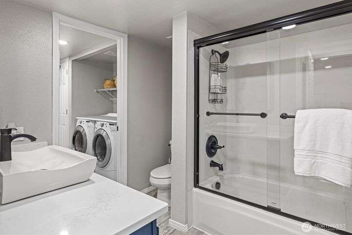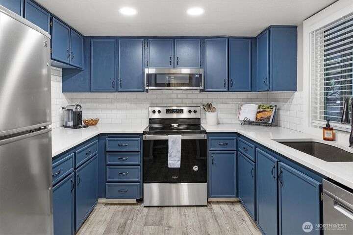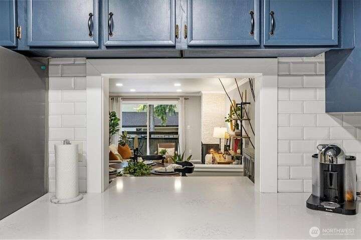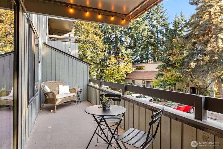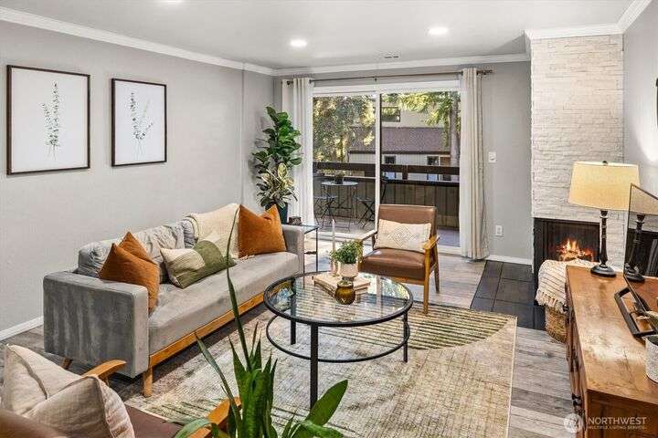 Amazing Location! Fully remodeled Yarrowood condo blends modern style with convenience! This open floorplan, 2 bed/1 bath home features a sleek kitchen with quartz counters, newer stainless appliances, and abundant cabinetry. The spacious living room offers a stylish tiled fireplace and slider to a private deck with storage. Oversized primary suite, updated full bath, formal dining, spacious pantry, and in-unit laundry. Everything is updated- flooring, carpet, paint, LED lighting & more. Large west facing patio for entertaining. Community amenities: pool, clubhouse, tennis & basketball courts. Steps to Cross Kirkland Corridor Trail, easy access to 520, 405, & Park & Ride.Includes 2 assigned parking spaces. No rental cap- great investment!