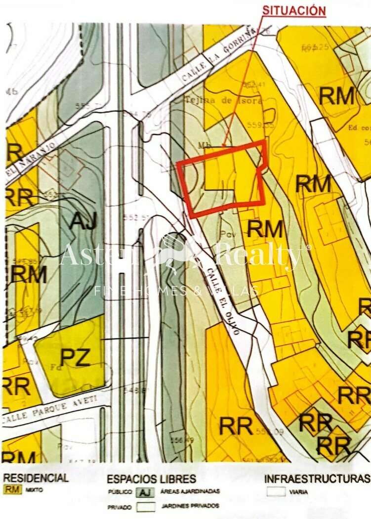 The plot is located in the area of Tejina de Isora, in the south of Tenerife, next to the main road, 1 kilometre from the TF1 motorway and 5 kilometres from the sea. It has a surface area of 587 m2 and is classified as urban. According to data checked with the town planning office, it has an area of land to be built on of approximately 275 m2 and is classified as Mixed Residential with a front and back garden of 250 m2.