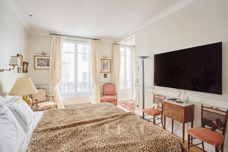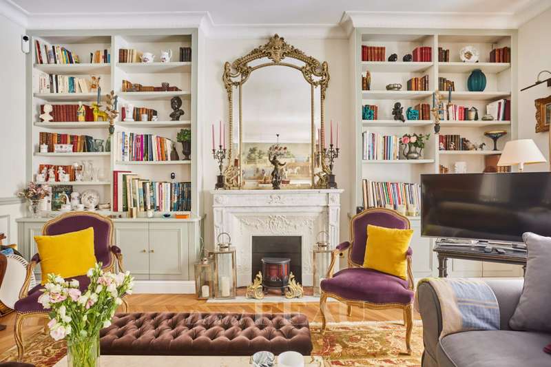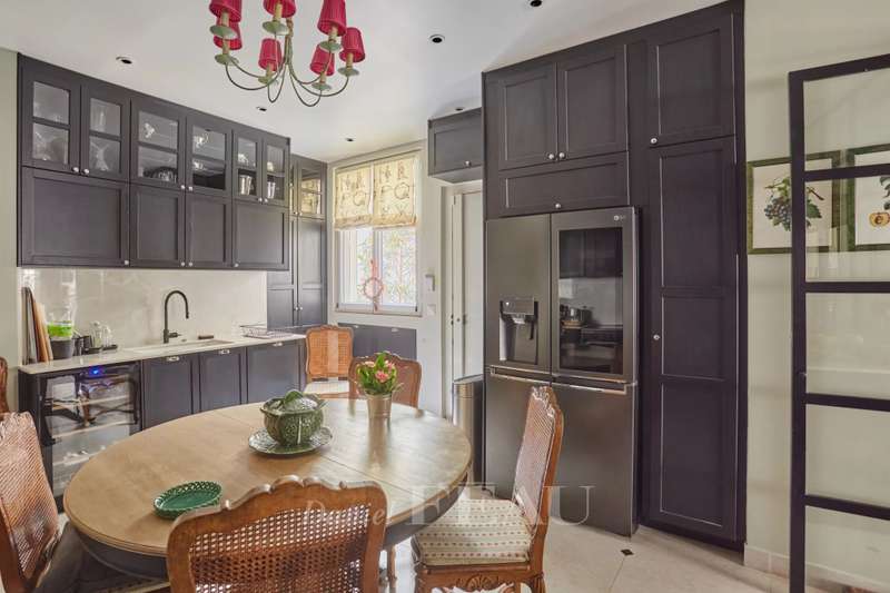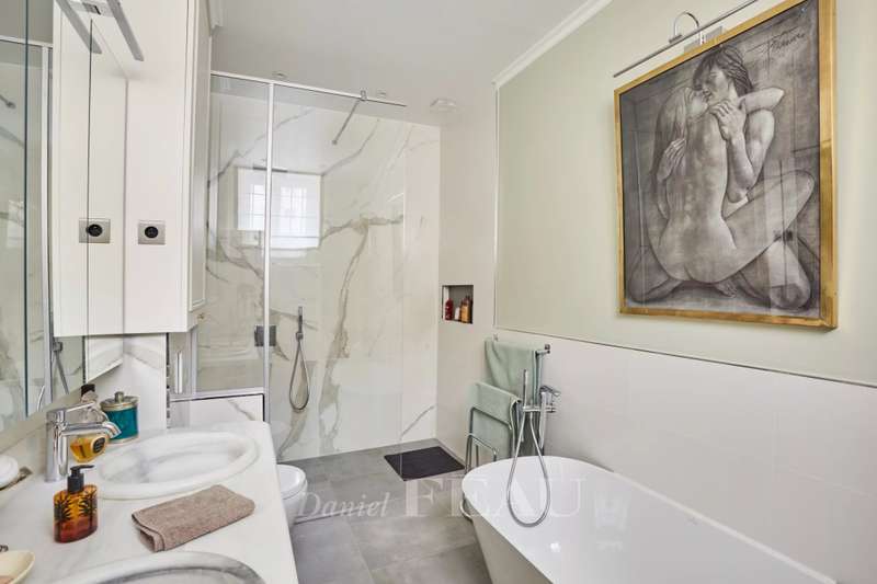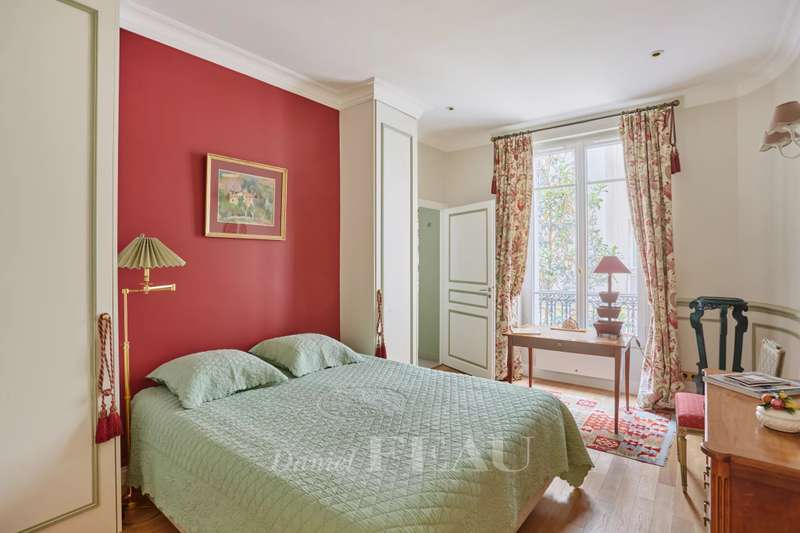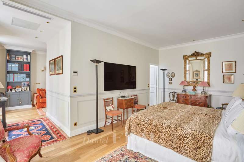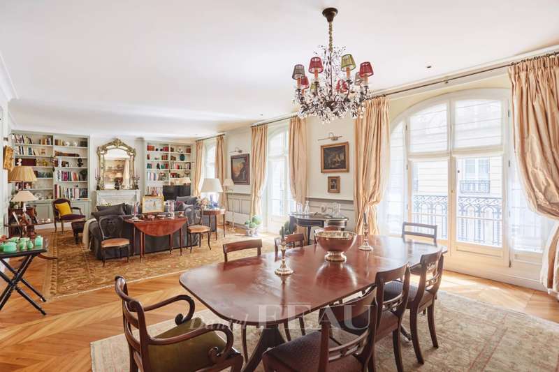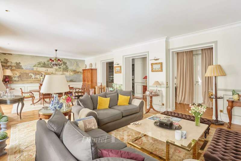 This superb apartment on the 1st floor of a fine Haussmannian building offers 181 sqm of living space which has been renovated throughout by an interior decorator. Featuring parquet flooring, mouldings and a fireplace, it includes an entrance hall, a 70 sqm triple living/reception room, a spacious kitchen with dining facilities, a suite with a study, a bathroom and a dressing room, a guest bedroom with a bathroom, and two wc. With two maid’s bedrooms (13.01 and 8.51 sqm of living space as defined by the Carrez Law) and two cellars. Air conditioning.