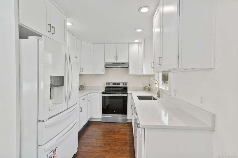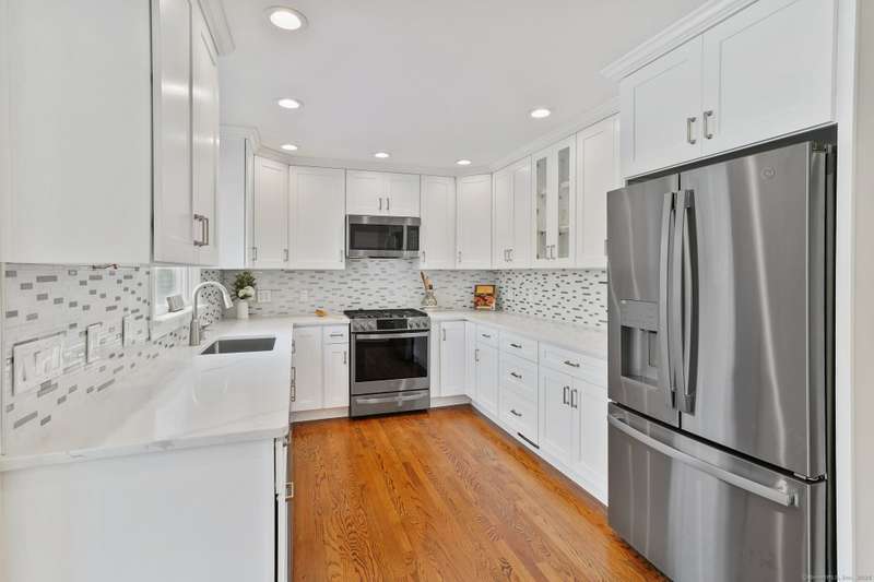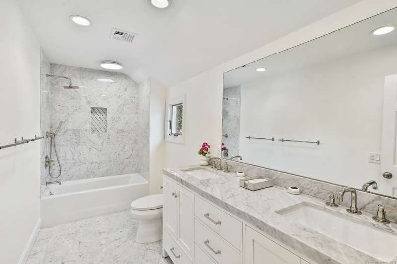 Welcome to this beautifully updated and energy-efficient Cape-style 2-family home, offering 4,191 sq. ft. of elegant living space on a professionally landscaped 0.49-acre lot in a desirable walk-to-town New Canaan location. The home is just minutes away from local shops, top-rated schools, fine dining, public parks and the New Canaan Metro-North train station with direct service to New York City's Grand Central terminal. This exceptional property features solar panels for energy savings and long-term value. With 15 spacious rooms, including 6 bedrooms and 4.5 bathrooms, the home is designed as two separate living spaces, each with its own entrance and a two-car garage in between. The adjacent apartment can be used as an au-pair or in-law suite. Inside, you'll find beautiful lighting throughout, rich updated hardwood floors, a living room with a classic fireplace, and French doors in both the living and family rooms that flood the home with natural light and create seamless indoor-outd