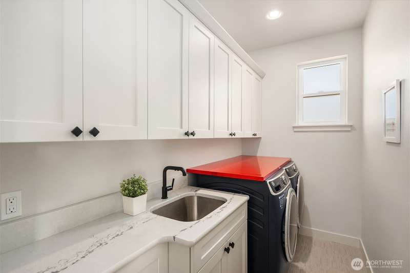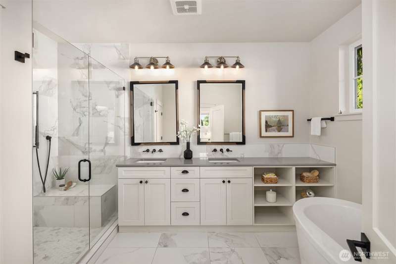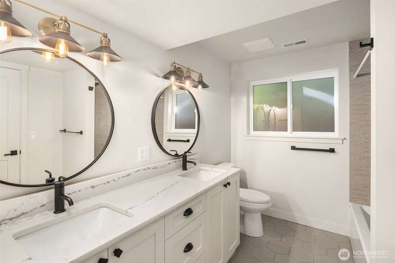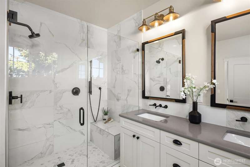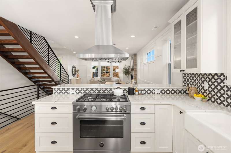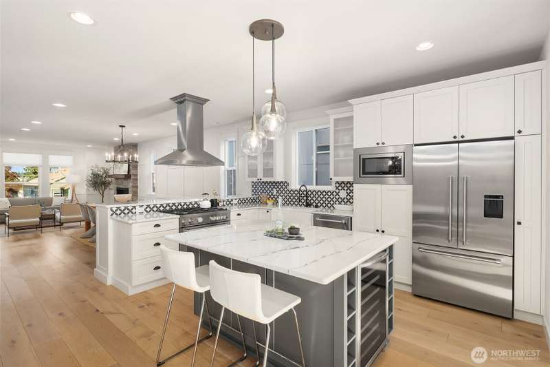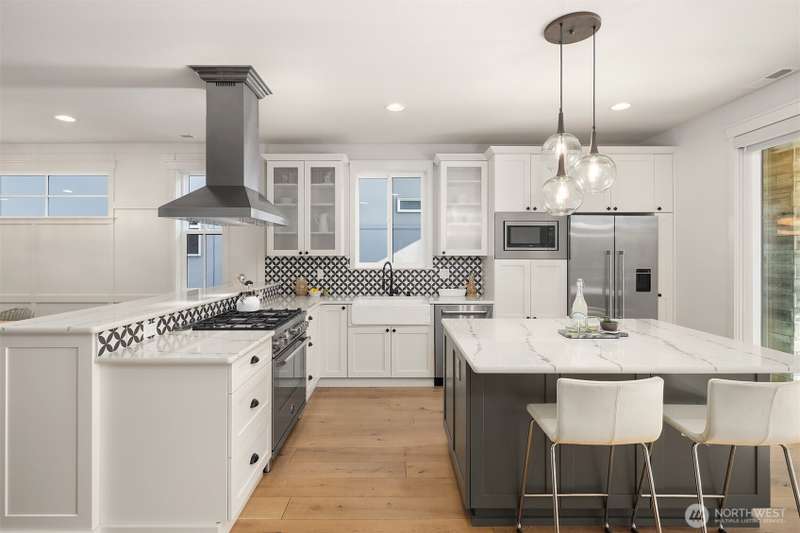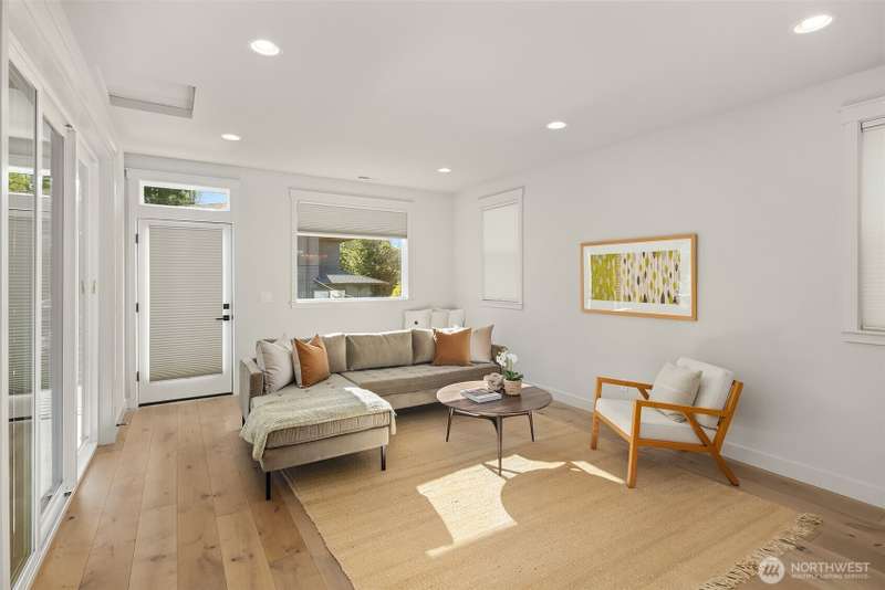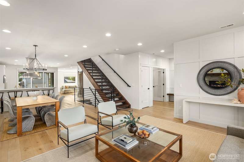This jewel of Crown Hill is a modern farmhouse in the heart of the neighborhood. Well appointed throughout, it features a spacious open main floor with a gas fireplace in the living room, formal dining, and a sleek kitchen w/ high end appliances. Covered and heated patio includes a fireplace and outdoor range, plus a bonus room and half bath off the kitchen. Private office near the entry is ideal for working from home. Luxury plank floors throughout. Upstairs has a lush primary suite, two beds, full bath, and laundry. Downstairs can be rental, MIL, or guest suite w/ 2 beds, wet bar, plumbed for wd, and own entrance. Big 2 car garage and extra alley parking. You’ll love how the space flows, it's really setup well.