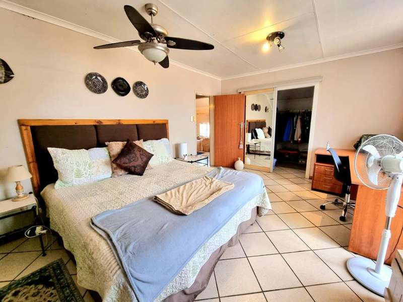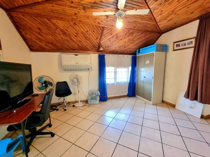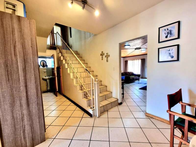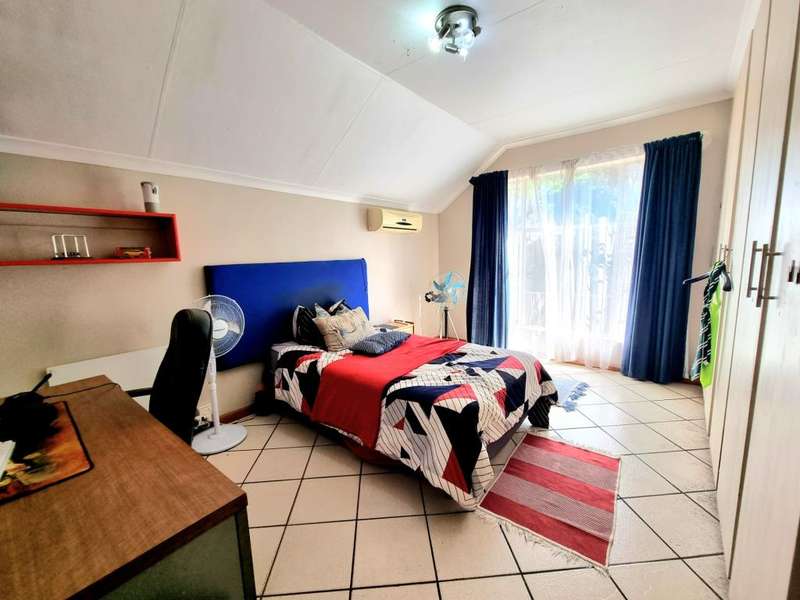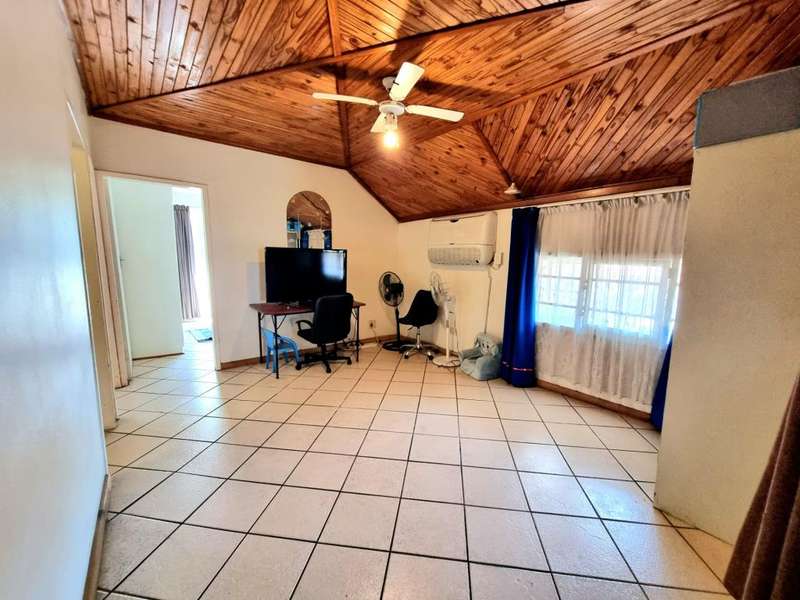 4 Bedroom House For Sale in Modimolle This spacious family home is set on a large panhandle stand in a quiet, established neighborhood of Modimolle. A welcoming front patio leads you into the home, where a bright and airy open-plan living and dining area creates the heart of the house. Just off the living space, a study nook leads to the first bathroom and the staircase to the upper floor. The kitchen is generously sized and fitted with an electric hob and oven. A separate scullery and laundry room provide convenient access to the single garage, while a back door opens to a tidy backyard featuring an outdoor toilet and a Wendy house for storage. Upstairs offers a second lounge area and four well-proportioned bedrooms, serviced by a second bathroom. The main bedroom includes air conditioning and a walk-in closet, while two additional bedrooms also have air conditioning and built-in cupboards. The home is equipped with a water tank and pressure pump to ensure consistent supply. A double carport and a single garage with a roll-up door provide ample parking. For more information or to arrange a viewing, please get in touch.