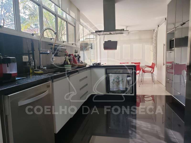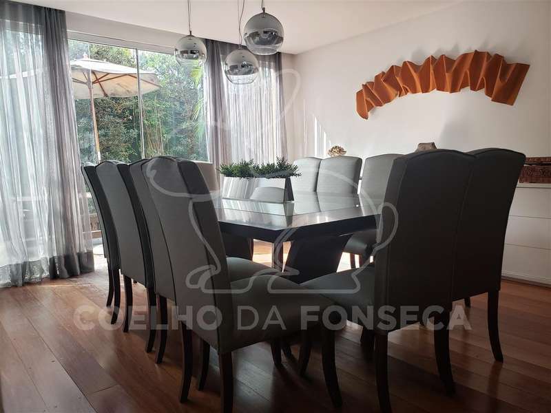 lavanderia. Presença de equipamentos de ar condicionado em todos os ambientes. Garagem coberta para 4 automovéis.