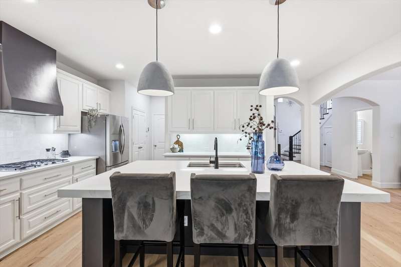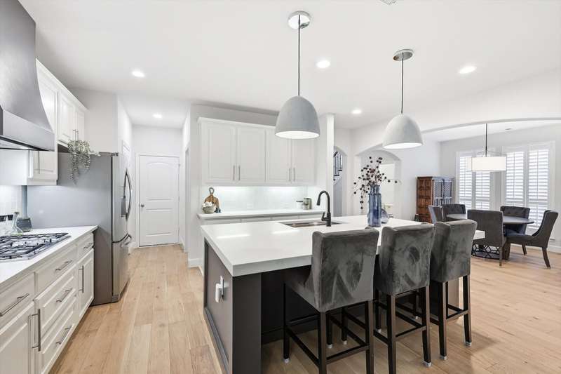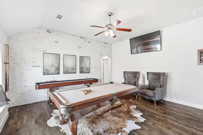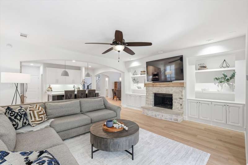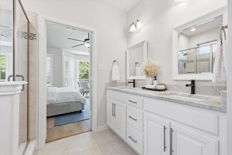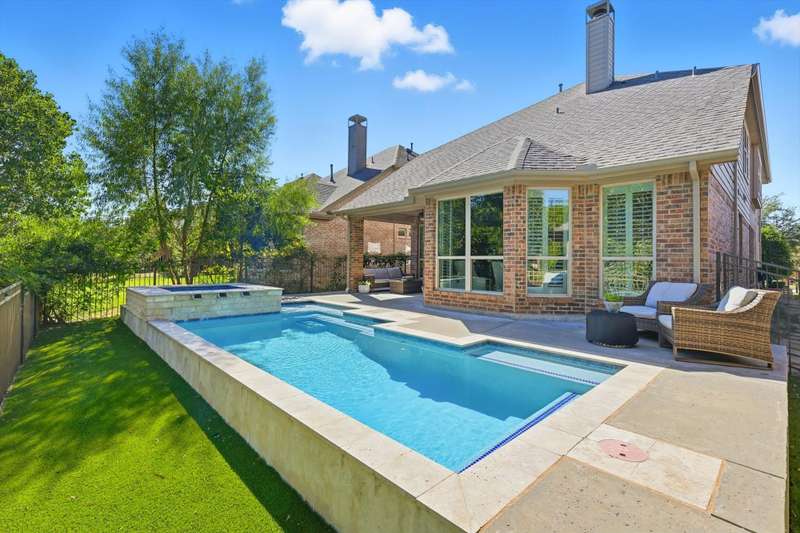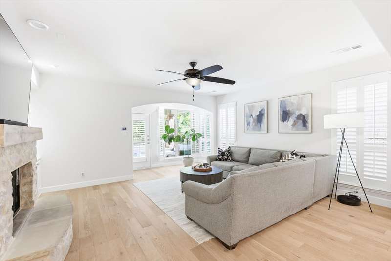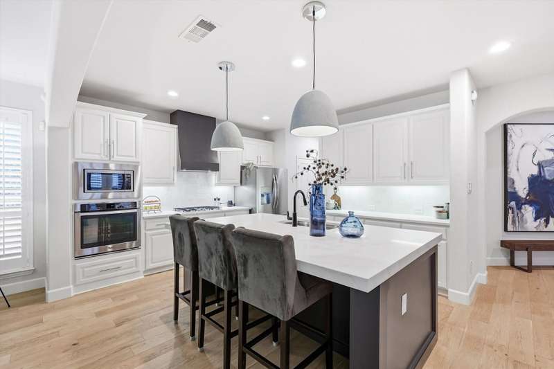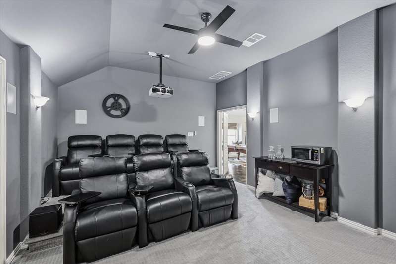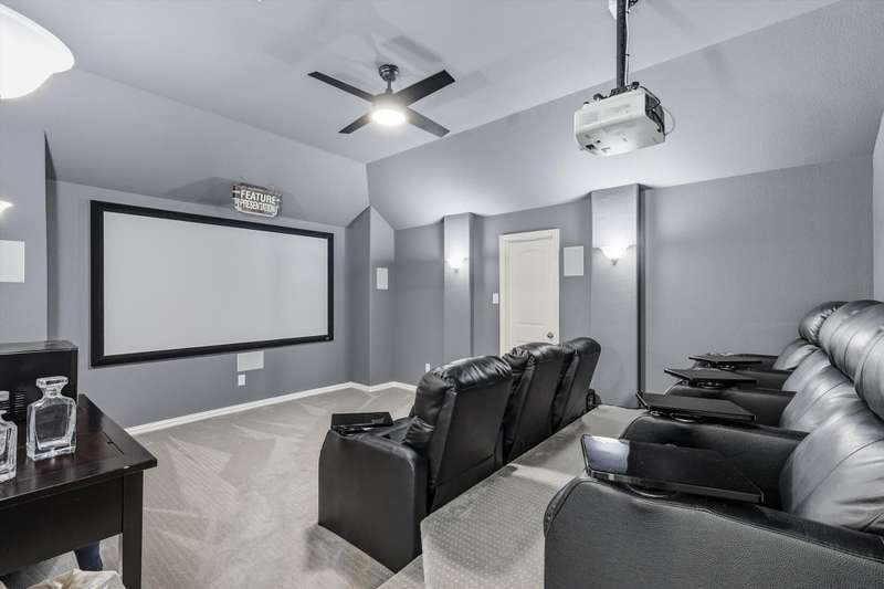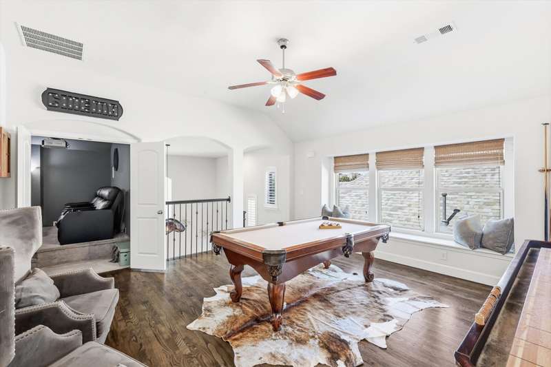 Elegant and truly better than a model home, this Lantana gem combines luxury updates, complete privacy, and a backyard haven framed by lush trees. The first level features white oak engineered hardwood flooring and a stunning 2.5in Calcutta quartz island as the centerpiece of the kitchen. The kitchen includes a custom vent hood, designer lighting, and premium finishes that create a refined, high-end look. Upstairs features freshly stained hardwood flooring in the game room, along with designer carpet and premium padding in the media room and bedrooms. The home also includes plantation shutters, updated feature walls, and thoughtfully remodeled baths. Additional highlights include 5in baseboards, a central vacuum system, and whole-home wiring for sound in the media room, game room, and living areas. The fully equipped media room is ideal for entertaining and family nights.Outdoors, enjoy a stunning pool and spa surrounded by privacy and greenery. Both can be effortlessly controlled through digital apps. A removable safety gate for the pool area will convey with the sale.This home combines luxury design, modern convenience, and tranquil surroundings in one exceptional Lantana property.The Lantana community offers an unmatched lifestyle with resort-style amenities and a true neighborhood feel. This home offers easy access to the Lantana Trail System. Residents enjoy miles of scenic jogging and walking trails, tennis courts, multiple pools, playgrounds, and year-round community events that bring neighbors together. Conveniently located near top-rated schools, restaurants, shopping, and entertainment, Lantana delivers both luxury and convenience in a beautifully maintained setting that residents are proud to be a part of, offering a true sense of community and an exceptional lifestyle for all who call it home.