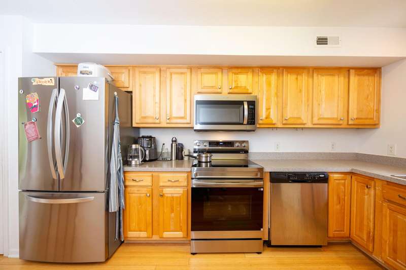 A comfortable and inviting upper-level 3 bedroom, 2 full bath condo in Touchstone Cohousing is ready for you! You'll appreciate recent updates, including brand new a/c, newer appliances, and bamboo flooring to name a few. Enter the condo and head up one flight of stairs to the main level with living room, kitchen/dining, 2 bedrooms, full bath, and W/D closet. Up another flight is a huge primary suite with dormers, 10 x 10 walk-in closet and 4-piece bathroom that includes a large soaker tub. Garage included with this condo! This intentional community is what sets this home apart. You'll love the sense of neighborly connection, shared outdoor spaces with gardens and play areas, a community building for gathering and shared meals. Learn more about Touchstone at touchstonecohousing.org