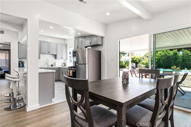 Welcome to the heart of Valley, where convenience meets comfort in this beautifully updated 3-bedroom, 1.5-bath single-family home. Perfectly situated just moments from LA Fitness, Valley Glen Community Park, and LA Valley High School, this 1,286 sq ft residence offers the ideal blend of location and lifestyle. Step through the gated front yard, featuring a paved driveway and a charming patch of green, and enter a home that’s move-in ready with thoughtful upgrades throughout. Inside, you’ll find stylish laminate flooring that flows seamlessly across a spacious, light-filled layout. The inviting living room welcomes you at the entry, providing direct access to a modern kitchen complete with sleek gray cabinetry, crisp white countertops, and quality built-in appliances—perfect for any home chef. The open-concept dining and family room area is designed for entertaining, offering plenty of space for gatherings and celebrations. Down the hall, three comfortable bedrooms await, each with ample closet space, while the updated bathrooms add a touch of contemporary flair. Step outside to your private backyard oasis, where a covered patio is ideal for relaxing or hosting guests, and a sparkling pool promises endless summer fun. Additional highlights include direct access to an attached two-car tandem garage, providing both convenience and security. Don’t miss your chance to own this charming Valley gem—schedule your private tour today and discover the perfect place to call home!