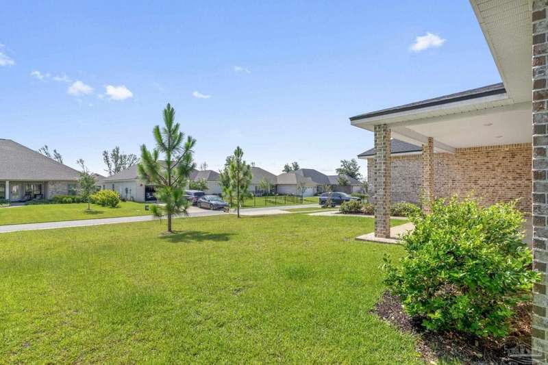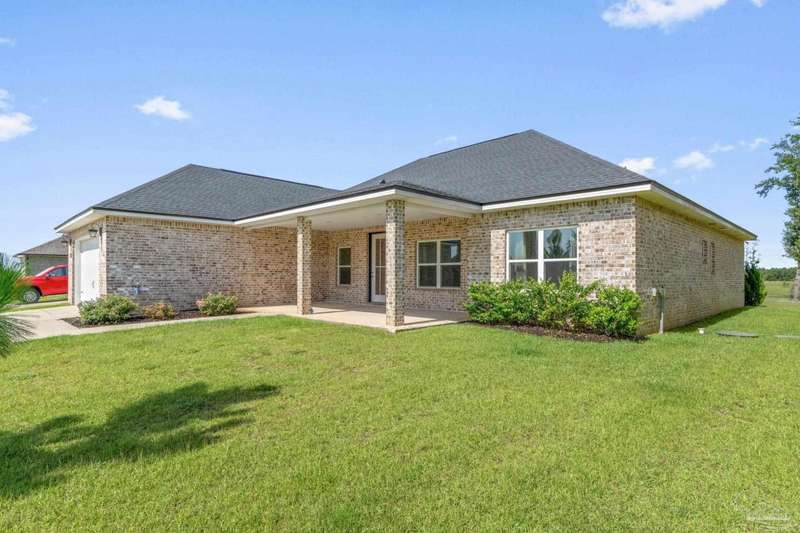 Low rate assumable loan available for qualified buyer. Welcome to your dream home in the highly sought-after Yellow River Ranch community of Milton! This beautifully designed 4-bedroom, 2.5-bathroom residence features an open design concept that is perfect for entertaining family and friends. As you step inside, you'll be greeted by a spacious living area adorned with luxury vinyl wood flooring that flows seamlessly into the modern kitchen. The kitchen is a chef's delight, boasting granite countertops, a large island, walk in pantry, Shaker cabinets with dovetail soft-close drawers and doors, and high-end stainless steel GE appliances, including a range, microwave hood vent, and dishwasher. The spectacular primary suite is a true retreat and features a tray ceiling. The beautiful primary bathroom offers double vanities with granite countertops, a separate tiled shower with a rain head, and a large garden tub with a tiled surround-perfect for unwinding after a long day. Step outside to enjoy the large covered back patio, ideal for alfresco dining or gatherings with neighbors and friends. This home is equipped with modern conveniences, including an irrigation system, gutters over the front porch area, a tankless gas hot water heater, a Taexx pest control system, and is pre-wired for surround sound and a Nest thermostat. Located in the picturesque Yellow River Ranch, this property is perfect for those seeking a modern, comfortable lifestyle. Don't miss the community pool and playground. Pickleball and tennis courts to be built in the future! Solar panels will be paid off at closing with acceptable offer.