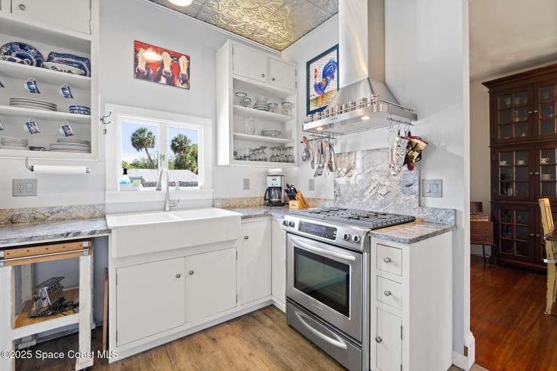 Historic Charm Meets Modern Functionality in the Eau Gallie Arts District. *72-Hour Kickout Clause in Place* Step back in time without sacrificing comfort in this beautifully restored 1928 historic gem, nestled in the heart of the vibrant Eau Gallie Arts District. Fully remodeled in 2007 to reflect its original period style, this 3-bedroom, 3-bathroom home blends timeless elegance with modern convenience-and offers a versatile flex room for your evolving needs. From the moment you arrive, the charm is undeniable. A classic white picket fence wraps around the spacious 1/3-acre corner lot, which features two entrances, a paved driveway, and ample parking for residents and guests alike. Whether you're hosting art walk gatherings or family barbecues, there's room for it all-including up to two RVs, with existing electrical and sewer hookups ready to go. At the rear of the property, a detached 2-car workshop presents exciting possibilities-convert it into a spacious in-law suite, guest a spacious in-law suite, guest house, or a private studio. There's also a detached shed that's just begging to be transformed into the ultimate she-shed or creative retreat. Make your way up the welcoming front steps and onto the expansive front porch an ideal spot for sipping coffee or wine in a rocking chair while watching the world go by under a canopy of mature trees. Inside, the home features beautifully restored hardwood flooring throughout, a formal living room and a cozy family area, a modern kitchen with stainless steel appliances, and a charming butler's pantry for added storage and entertaining ease. The flex room offers great potential as a home office, den, or playroom. Upstairs, you'll find two generously sized bedrooms and two full bathrooms. A third, smaller room is perfect for a nursery, private dressing room, or ensuite extension to the adjacent bedroom. Step outside onto the upstairs balcony to enjoy views of the neighborhood's historic streets and lush greenery. You'll be living just a five-minute stroll from some of Brevard County's trendiest bars, restaurants, galleries, and boutiques. Outdoor lovers will appreciate being less than ten minutes from the beach, as well as nearby boat docks, the marina, and peaceful spots for kayaking.