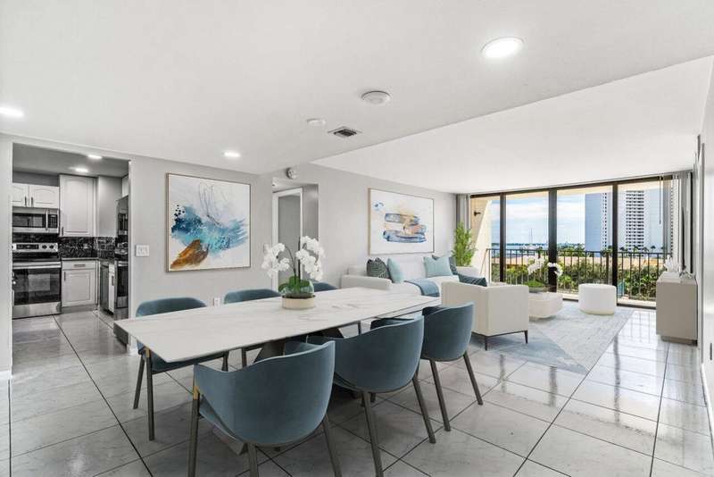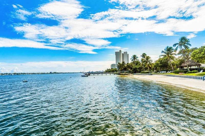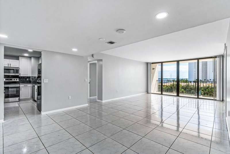 Great investment, tenant thru 7/2026. Large private beach! Updated 2BR/ 2BA condo w/large balcony & Intracoastal view! Large rooms & great living space! New interior paint, new recessed lighting, tiled floors throughout (NO CARPET), new dishwasher, ALL impact windows/sliders, foyer closet, trash chute conveniently nearby, air conditioned storage locker. Manned gated entry. Building: front desk attendant (8:30-5), lobby, activity room, 2 social rooms (1 w/catering kitchen, 1 w/wet bar), library, fitness, shower rm w sauna, pool w/waterfront sun deck, hot tub. tiki, grills, PRIVATE BEACH, pier w cleaning station, kayak/canoe ($120/yr rental). Quiet location close to waterfront dog park, flotilla club (w referral), sailing club, manatee lagoon, PBI airport, & Rybovich Marina!
