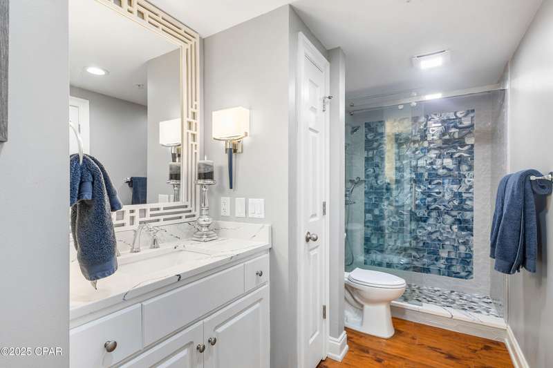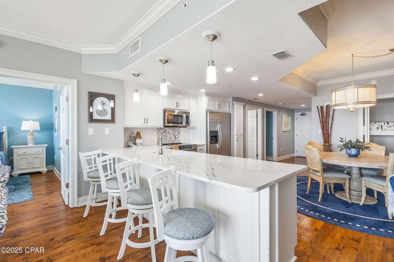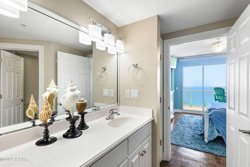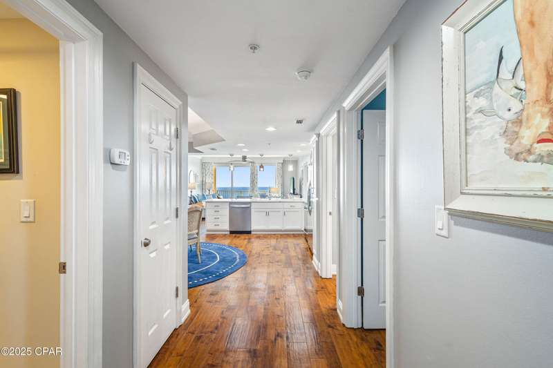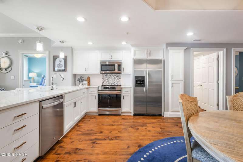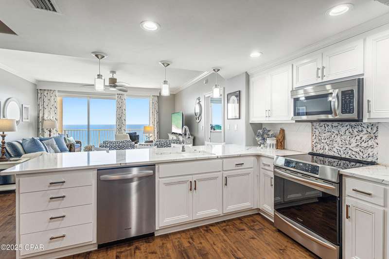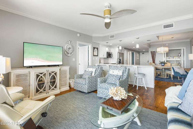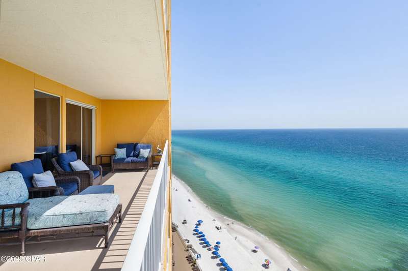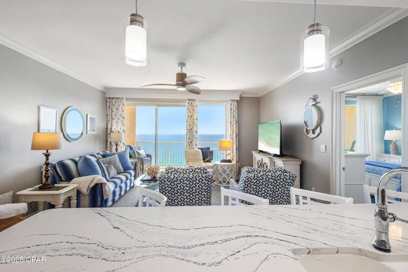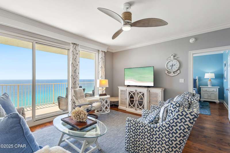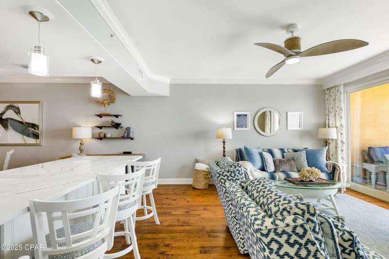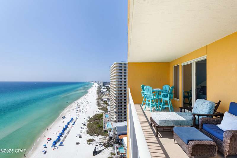 Discover A RARE, a COMPLETELY RENOVATED absolutely stunning condo at Treasure Island Resort with sweeping 17th floor Gulf Front Views! This breathtaking, completely renovated condo comes fully furnished with custom furniture and equipped with all the modern bells and whistles, (even electronic window treatments & custom California Closets!) for a perfect home, vacation getaway, or investment property. Although never rented, with these modern updates and complete renovation, the short term rental potential is massive as this unit really stands out in the building. This stunner features brand new flooring, brand new kitchen and bathrooms, with new high-end furniture, artwork, and stunning decor throughout the 2-bedroom, 2-bath gem AND a bonus set of bunk beds built into the wall, accommodating up to eight guests to maximize space and rental income. The open-concept kitchen boasts beautiful quartz countertops, updated kitchen appliances, and everything you need for cooking -- truly turnkey at its finest. Treasure Island Resort Condominium is near St. Andrews State Park on the east end of Panama City Beach. This area is filled with great local restaurants and outdoor activities, making it the ideal place to vacation, live, or both. Life is meant to be experienced, and Treasure Island, Unit 1709, is the epitome of just that! MUST SEE IN PERSON!