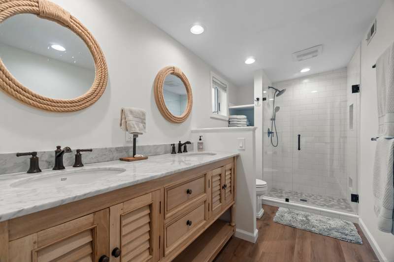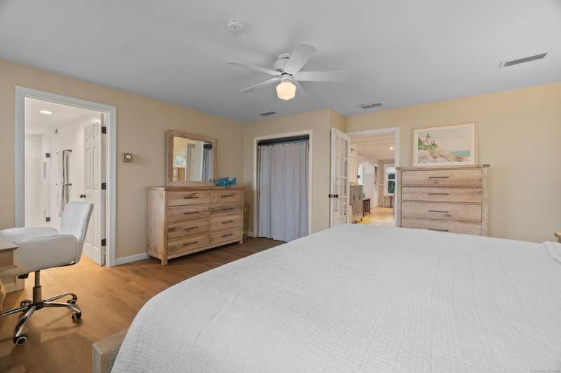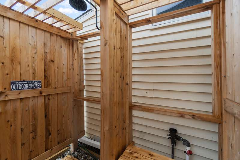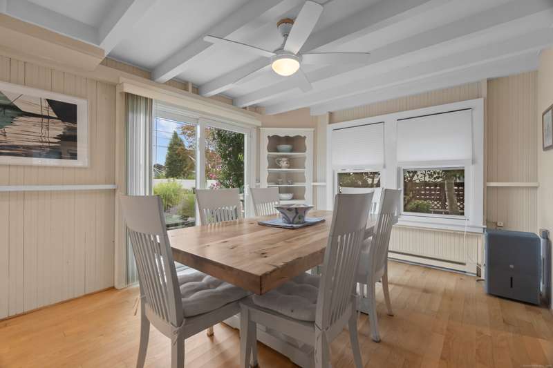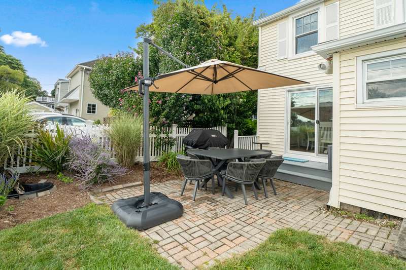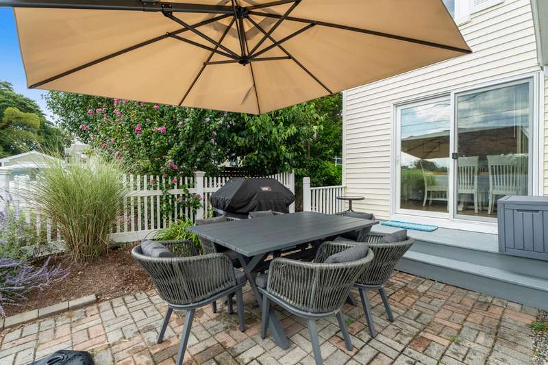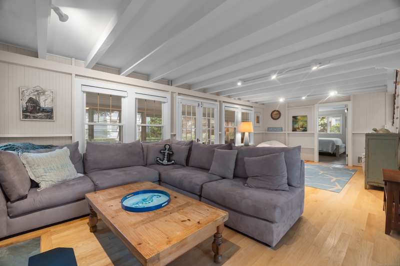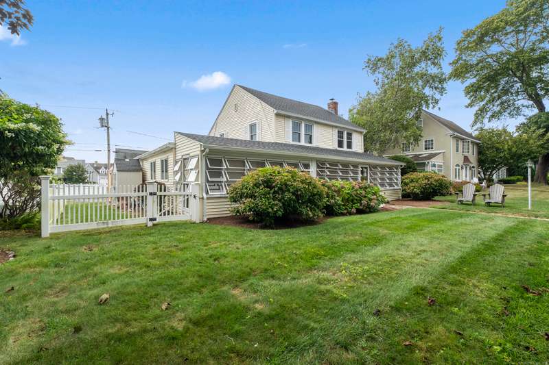 Welcome to 21 West Walk, where coastal living and timeless traditions come together. Just five houses in from Beach Park Point Association's sandy beach, this 4-bedroom, 2.5-bath seasonal home, with an office, offers a rare first-floor master suite, recently remodeled with a beautifully updated bath. Designed for comfort and convenience, the home features central air conditioning and a wood stove insert - perfect for taking the chill off crisp fall mornings. The open layout includes a generous living room, sun-filled dining area, and cozy breakfast nook off the kitchen. A large screened porch extends the living space, the perfect spot to gather after a day at the beach. Upstairs you'll find three additional bedrooms and a full bath, giving everyone room to relax. An expansive mudroom with brand-new washer and dryer makes coming and going from beach days a breeze. Outdoor living shines with a private dining patio and a new outdoor shower with enclosure - a must-have for seaside living.