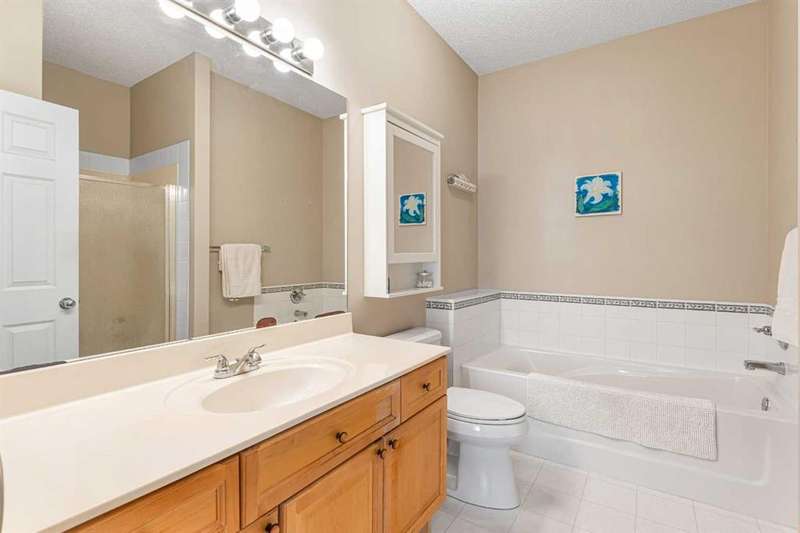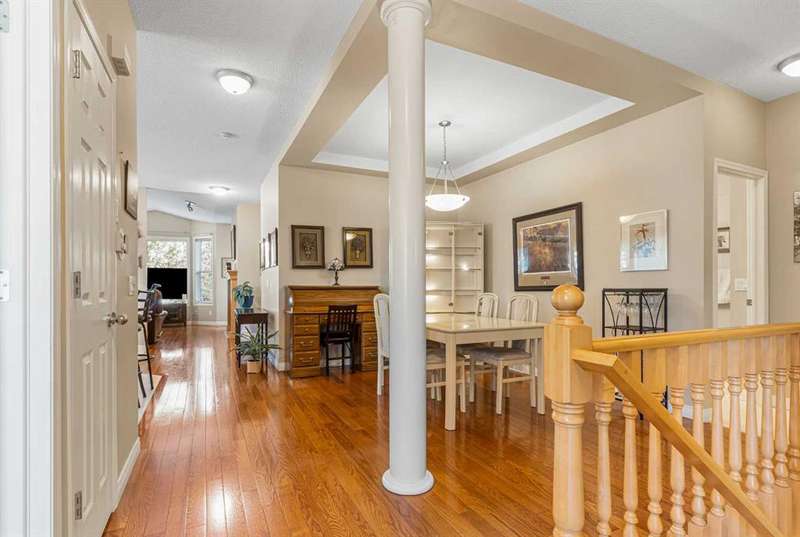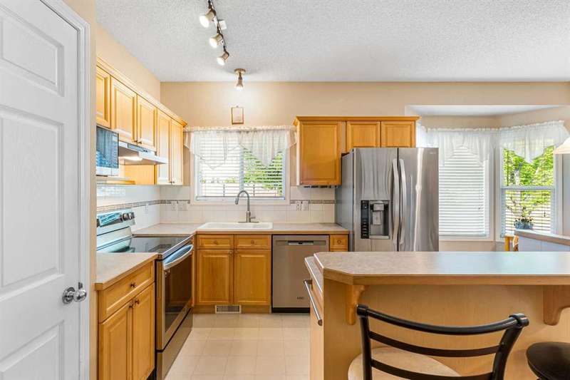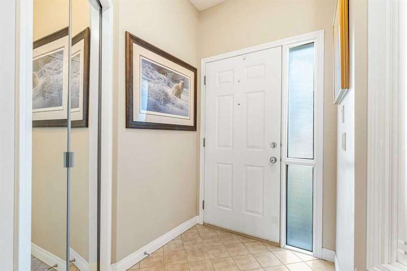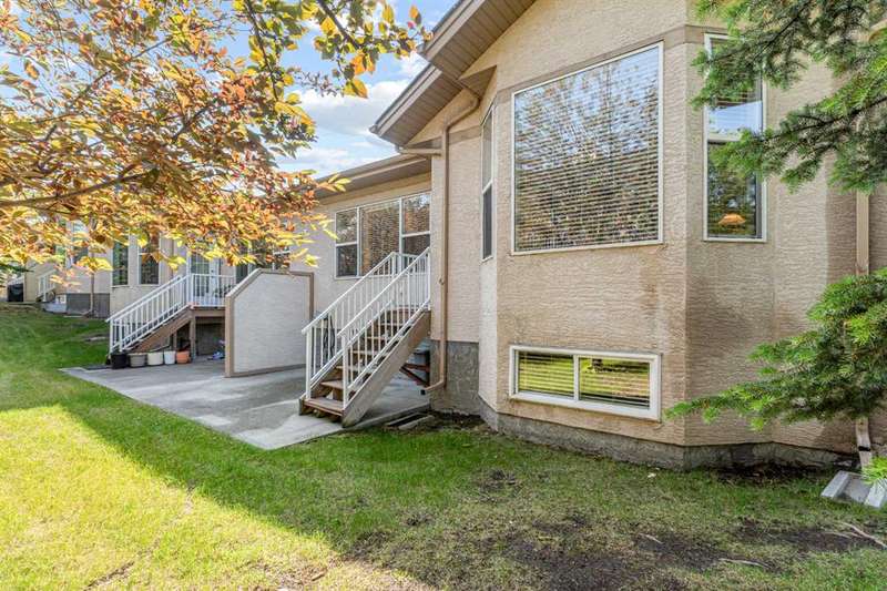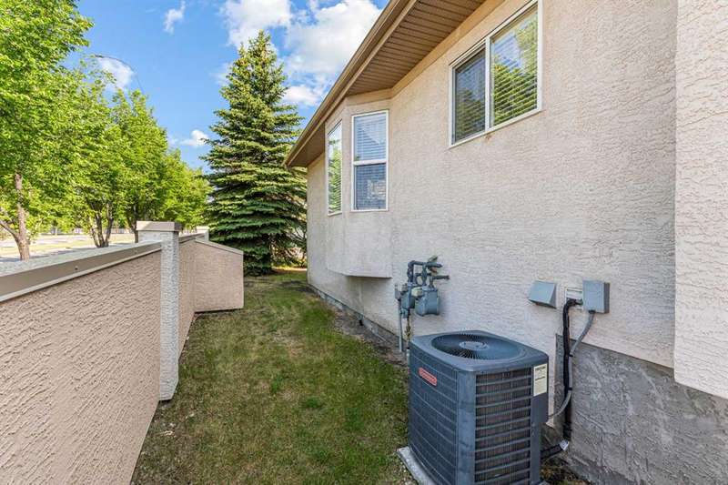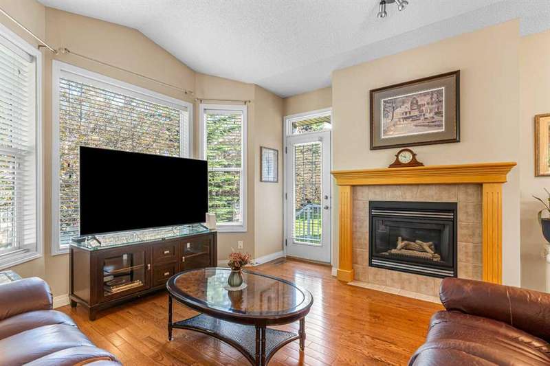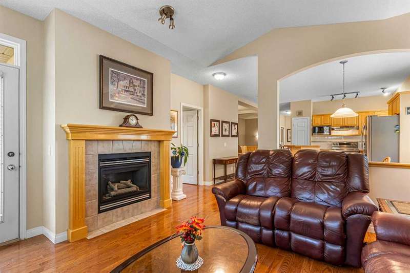Welcome to this beautifully maintained 18+ villa, offering the ideal space to comfortably age in place. With over 2,000 sq ft of fully developed living space, this home blends thoughtful design with timeless finishes in a prime location. As you enter, you are greeted by rich hardwood flooring that runs throughout the main level, setting a warm and elegant tone. The open-concept layout offers a bright and inviting living room, highlighted by a vaulted ceiling, cozy fireplace, and a large window that welcomes natural light throughout. The kitchen is both functional and inviting, featuring a central island, ample cabinetry, a pantry, and a sunny eat-in nook. It flows seamlessly into the formal dining room, perfect for hosting family and friends. The main level also includes a versatile den or home office complete with a built-in Murphy bed. The spacious primary suite offers a peaceful retreat with large windows, a walk-in closet, and a well-appointed ensuite featuring a soaker tub and walk-in shower. You will also appreciate the convenience of main floor laundry and a second full bathroom. The fully finished basement expands your living space with a large family room, an additional 2-piece bathroom, and plenty of room for hobbies, games, or entertaining. Outside, enjoy your private patio, perfect for a quiet morning coffee or relaxing evening. With central air conditioning, a double attached garage and the ease of low-maintenance living, this home offers comfort in every season. Recent upgrades include a new hot water tank, new roof and eavestroughs. Ideally located just minutes from a golf course, shopping, restaurants, and recreation, this villa truly delivers the best of lifestyle and location.