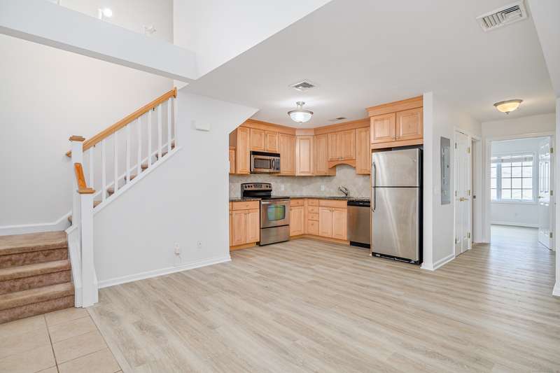 Looking for the perfect townhome-style condo in a great Norwalk location?? This is the one....Enjoy easy living in this turn-key 2BR/2BTH bi-level townhome with parking, a low condo fee and super convenient location. From the moment you walk through the door, you'll be greeted by the refreshed interior ready for your finishing touches. The open and airy layout creates a seamless flow between the kitchen and living space, ideal for both relaxing and entertaining. You'll love the new vinyl plank flooring throughout the main level, offering both style and durability. Appreciate the convenience & comfort of central AC, in-unit laundry & additional deeded storage in the building. As an end unit, you'll enjoy the extra privacy and natural light. Upstairs, the primary suite is a sanctuary with vaulted ceilings, full bath and a spacious walk-in closet with built-ins, making organization a breeze. What truly sets this condo apart is its prime location. You're not just buying a home; you're gain