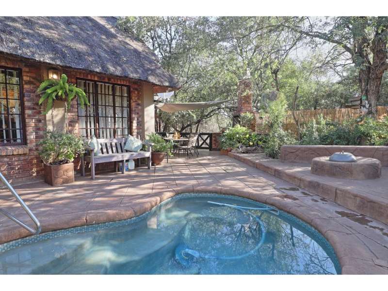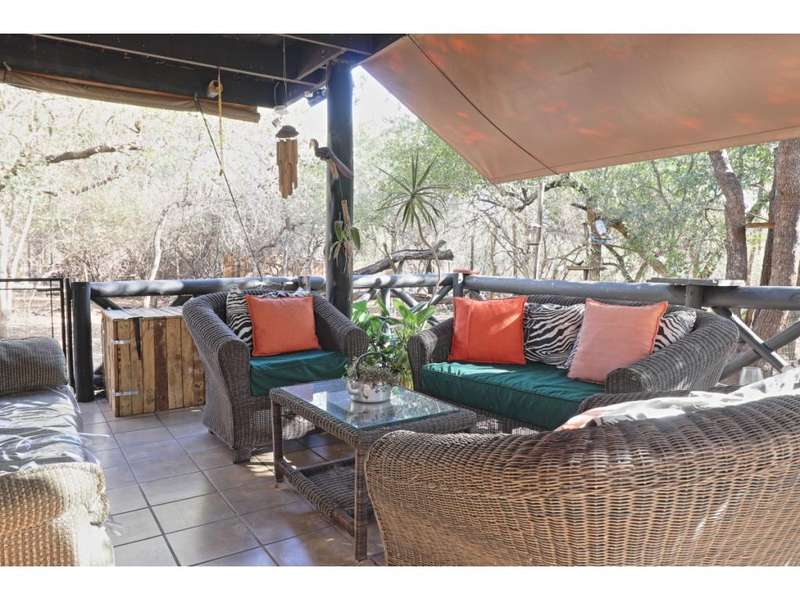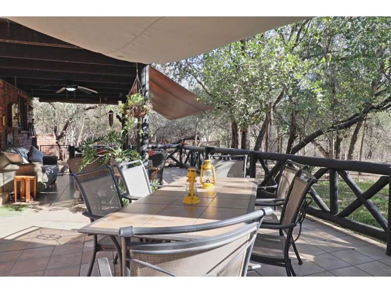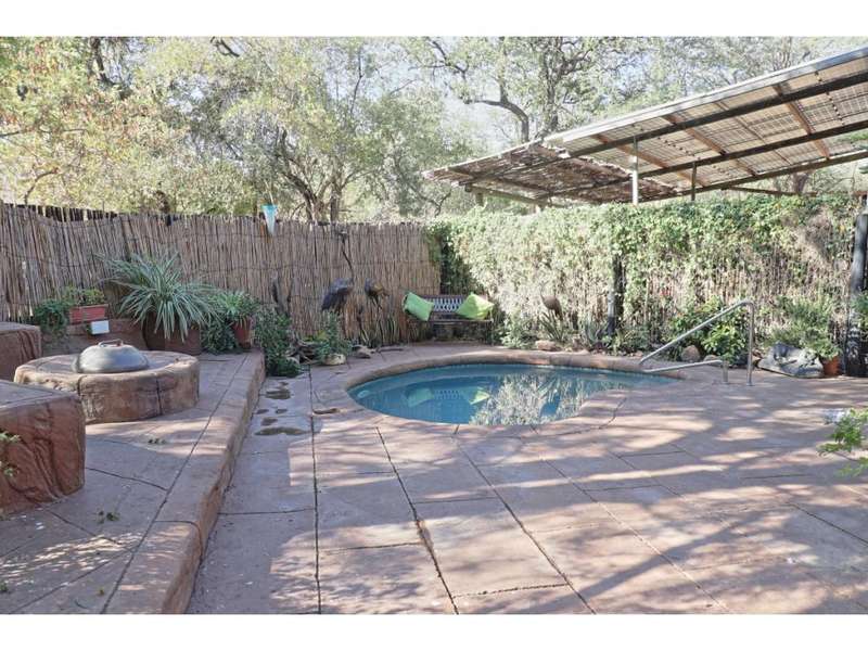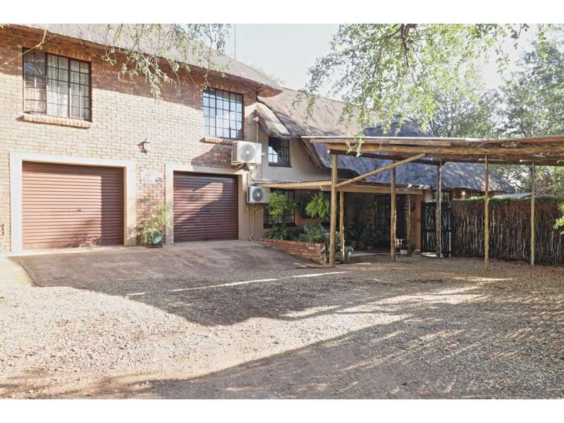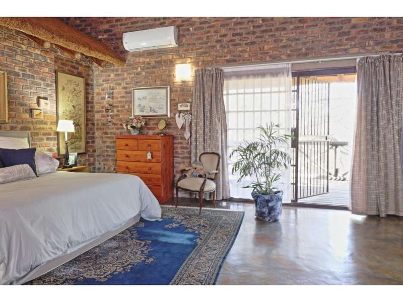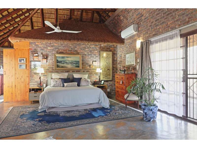 Situated in Marloth Park, this five-bedroom, fully en-suite home backs onto a wildlife greenbelt and is located minutes from the Kruger National Park's Crocodile Bridge Gate. Core Infrastructure: The property is equipped for off-grid living with a 12-panel solar system, two lithium batteries, and a prepaid electricity backup. A borehole with a 5,000L tank and a full filtration system provides water throughout the home. Climate is controlled by five inverter air-conditioners. The residence is secured with six cameras linked to a security firm and includes high-speed Wi-Fi. Layout and Accommodation: The home contains a total of five en-suite bedrooms. The main house features two ground-floor suites and two upper-floor suites. One upstairs bedroom has a private balcony, while the master suite includes a walk-in closet, office nook, a second private balcony, and a bathroom with a clawfoot tub. An attached, self-contained flatlet provides the fifth en-suite bedroom, complete with a kitchenette and sitting area. Living and Entertainment: Internal living spaces include a kitchen with direct access to the outdoor area, a sunroom used for dining, and a central TV lounge on the upper floor. The enclosed outdoor entertainment area offers a pool, built-in braai, and boma, all with open views to the greenbelt.