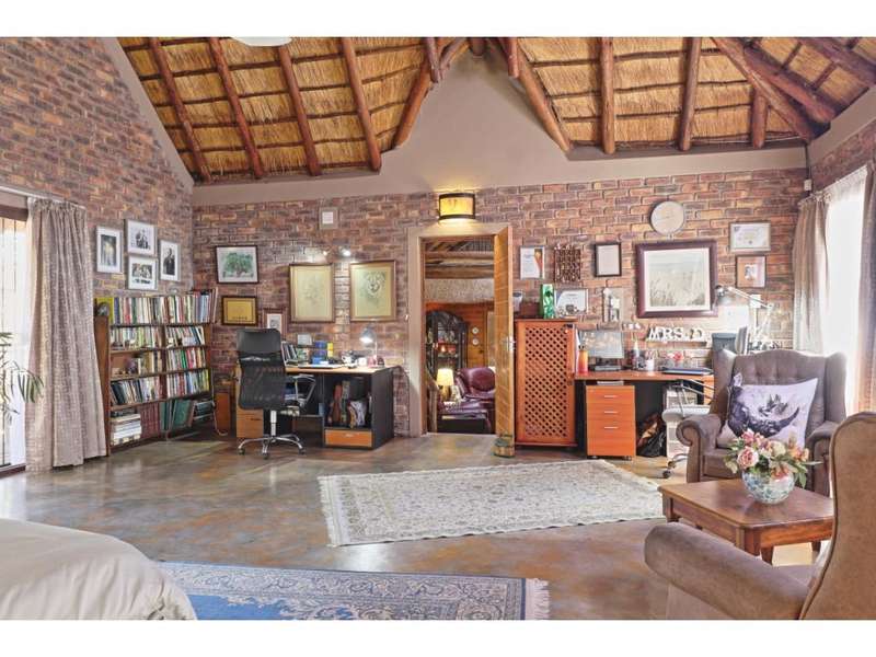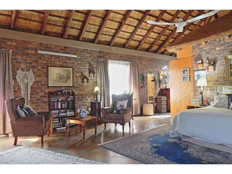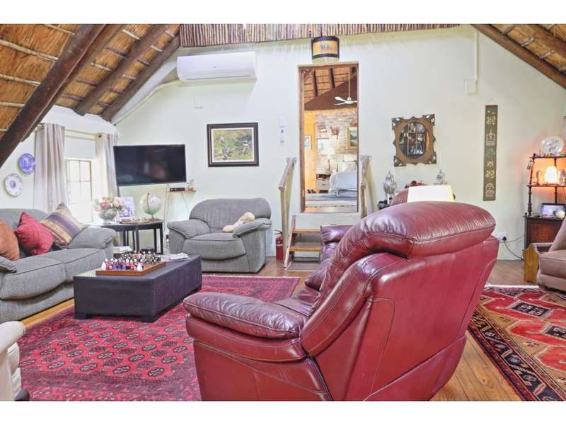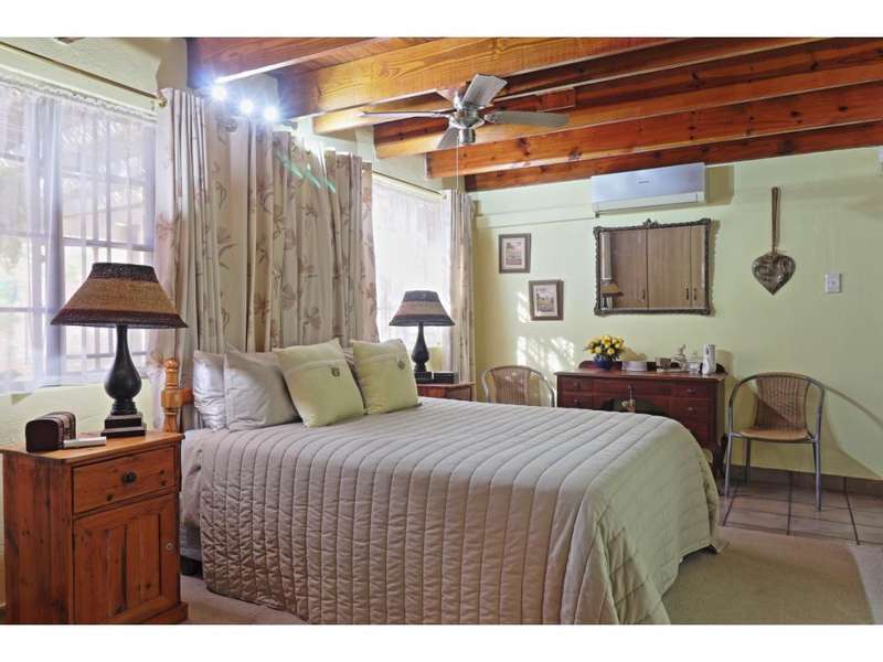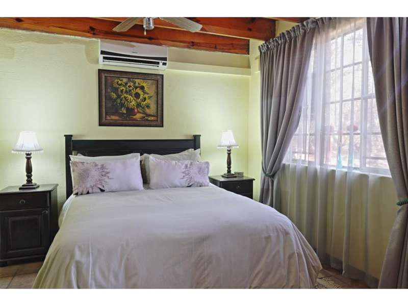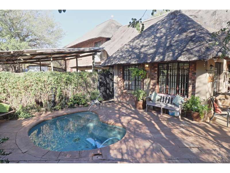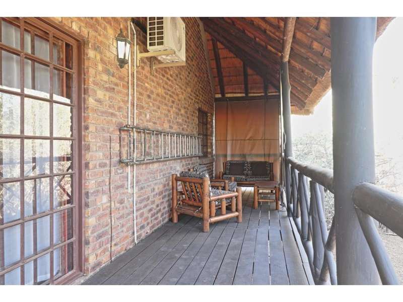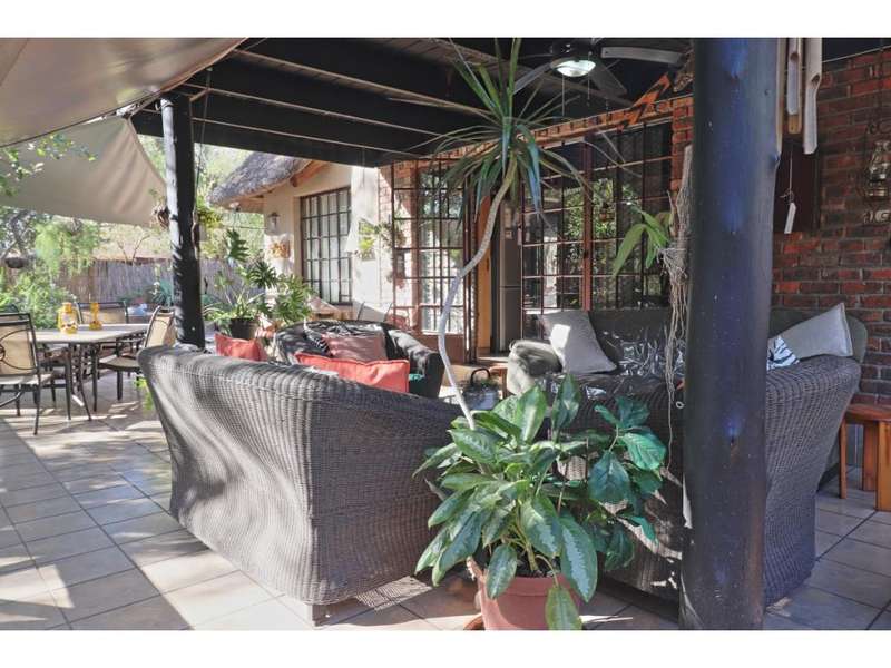 Situated in Marloth Park, this five-bedroom, fully en-suite home backs onto a wildlife greenbelt and is located minutes from the Kruger National Park's Crocodile Bridge Gate. Core Infrastructure: The property is equipped for off-grid living with a 12-panel solar system, two lithium batteries, and a prepaid electricity backup. A borehole with a 5,000L tank and a full filtration system provides water throughout the home. Climate is controlled by five inverter air-conditioners. The residence is secured with six cameras linked to a security firm and includes high-speed Wi-Fi. Layout and Accommodation: The home contains a total of five en-suite bedrooms. The main house features two ground-floor suites and two upper-floor suites. One upstairs bedroom has a private balcony, while the master suite includes a walk-in closet, office nook, a second private balcony, and a bathroom with a clawfoot tub. An attached, self-contained flatlet provides the fifth en-suite bedroom, complete with a kitchenette and sitting area. Living and Entertainment: Internal living spaces include a kitchen with direct access to the outdoor area, a sunroom used for dining, and a central TV lounge on the upper floor. The enclosed outdoor entertainment area offers a pool, built-in braai, and boma, all with open views to the greenbelt.