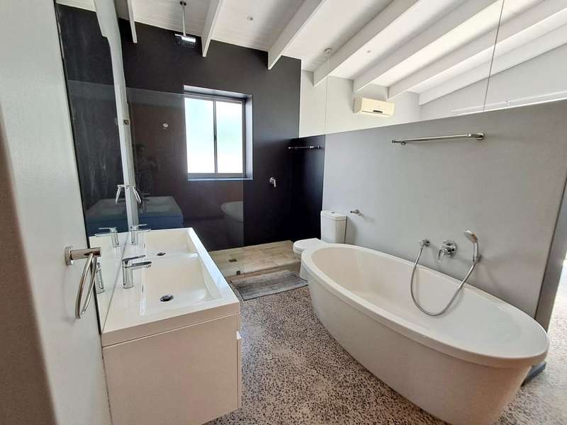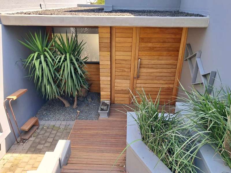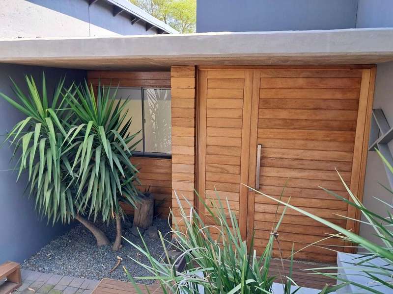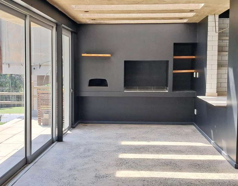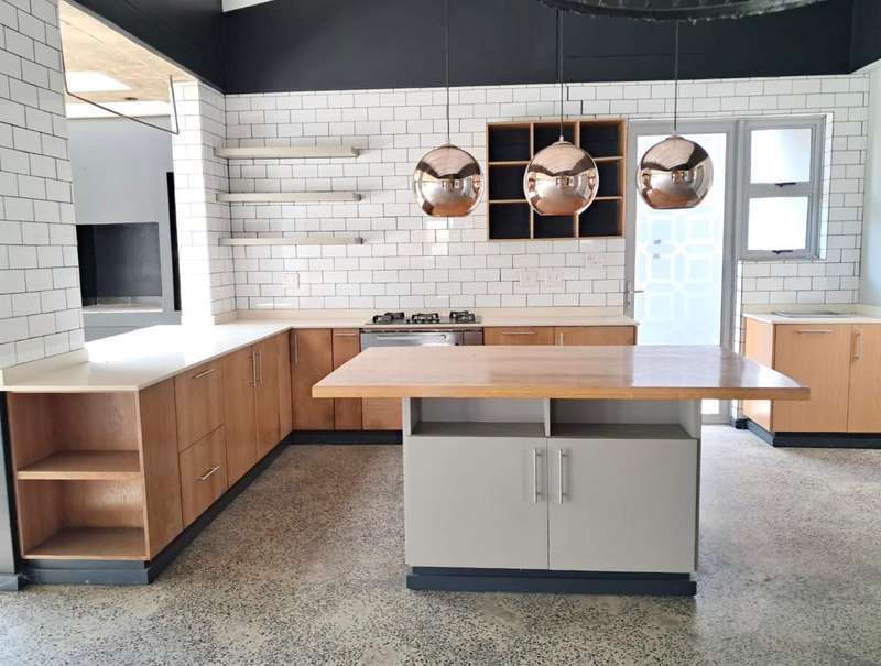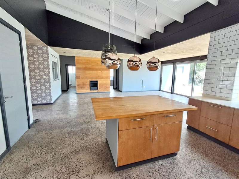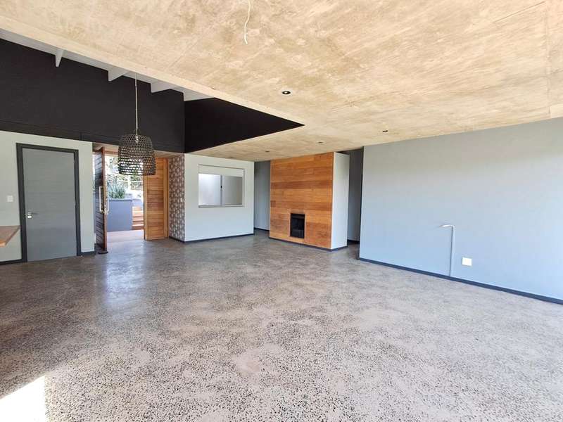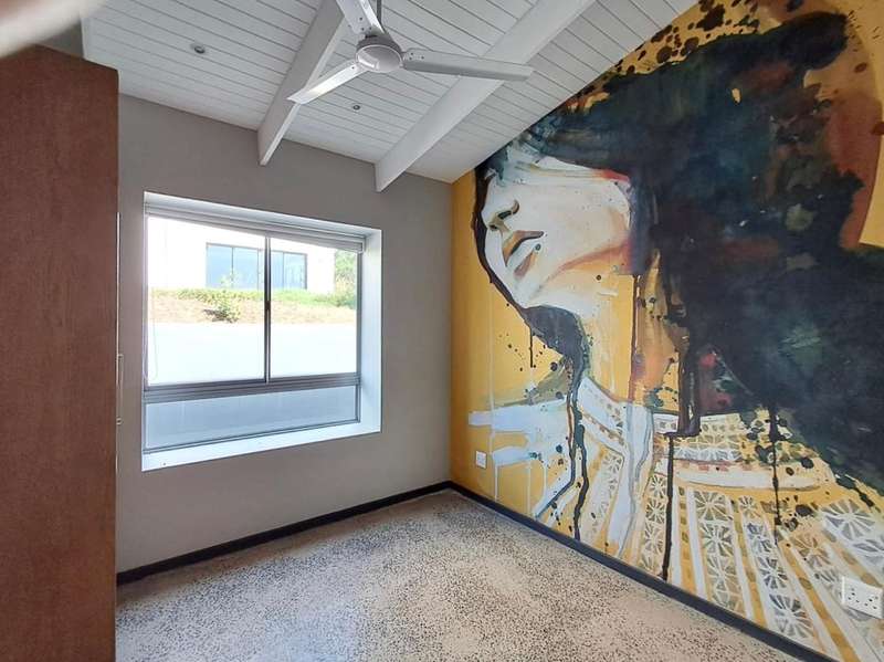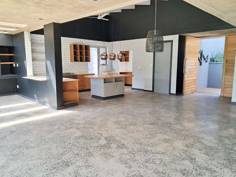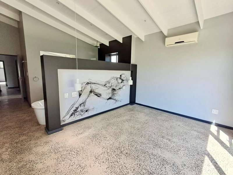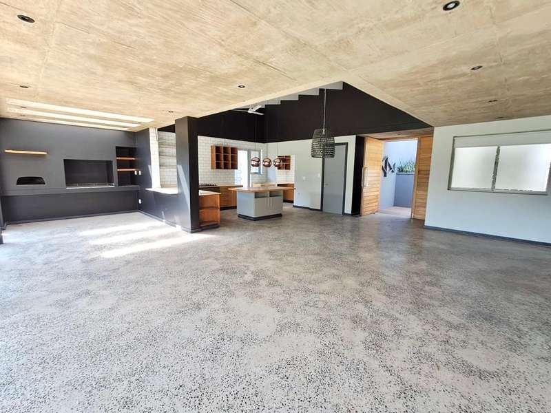 Introducing an ultra-spacious, contemporary industrial-style home on Palm Lakes Estate. The home boasts screeded concrete flooring throughout and an open plan living area. The open-concept layout seamlessly connects to a sleek kitchen featuring a gas stove, centre island and separate scullery. Stylish pendant lighting hangs above the centre island. The living area and entertainment area feature a fireplace, built in braai and pizza oven making this space the perfect spot for entertaining. This home features 4 bedrooms all of which are en suite as well as a designated office/study area. Large stacker doors lead out from the entertainment area to the garden. From the garden there are stunning views of a lush greenbelt. This expansive outdoor space is large enough to accommodate a swimming pool. Contact me to view this beautiful home!