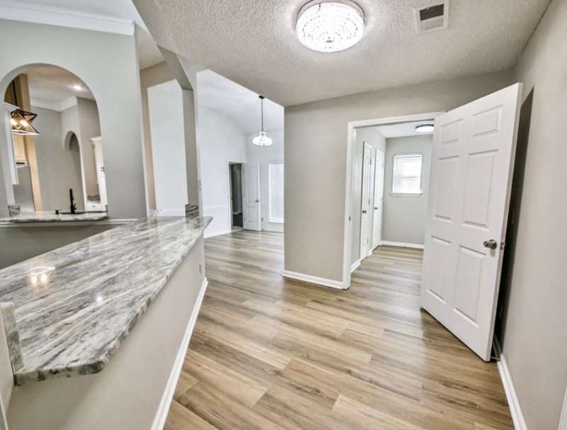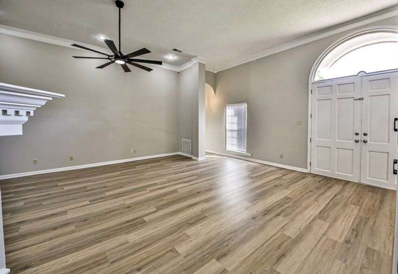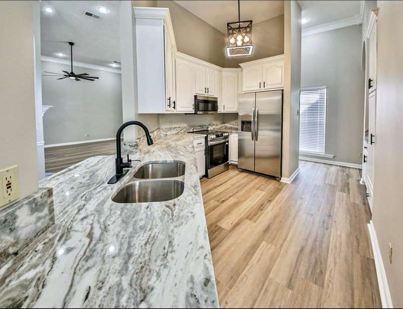 This stunning 4-bedroom, 2-bath home is located on nearly three quarter of an acre gorgeous corner lot. This beautiful home features an open concept layout with a seamless flow which is perfect for everyday living and entertainment. The kitchen is connected to the breakfast and dining room areas, and offers abundant cabinetry, an 8 seater bar, and lovely granite countertops. The spacious elegant great room has a fabulous fireplace and a nice bookshelf. The primary suite includes double vanities, a walk-in shower, jacuzzi tub, beautiful fixtures and much more. There are two secondary bedrooms located downstairs and are generously sized. Go upstairs and find a huge fourth bedroom. The large, fenced backyard has a covered patio and is perfect for family gatherings and entertainment. This home offers so many great features and is nested in a sought out neighborhood. Schedule your showing today!