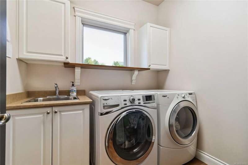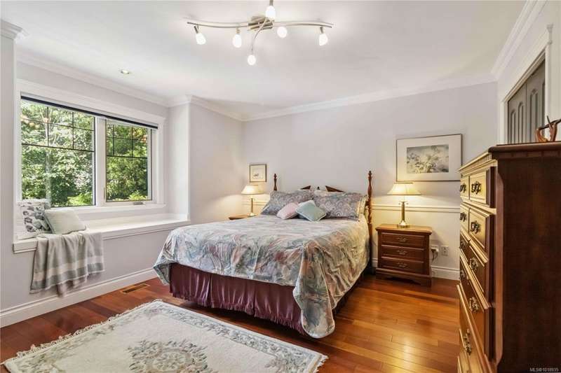 Discover your dream home in prestigious Leauni Estates, Gordon Head! This stunning 5-bedroom, 4-bath executive residence combines timeless design with luxurious comfort. Enter into bright, elegant spaces featuring teak hardwood floors, granite countertops, a double-sided gas fireplace, and a ducted heat pump with A/C. The gourmet kitchen is a showstopper with its 6-burner Thermador gas range, oversized island, walk-in butler's pantry, and sunny breakfast nook. Perfect for entertaining, the main floor offers both formal and casual gathering spaces. Upstairs, unwind in a serene primary suite with a spa-like ensuite and walk-in closet. The lower level includes a private 1-bedroom suite with separate laundry?ideal for family or guests. Outside, enjoy a beautifully landscaped yard with irrigation, a tranquil patio retreat, and an EV-ready double garage. Close to UVic, beaches, parks, and top schools?this is luxury living at its best.