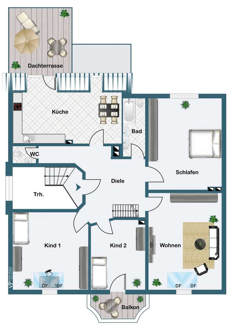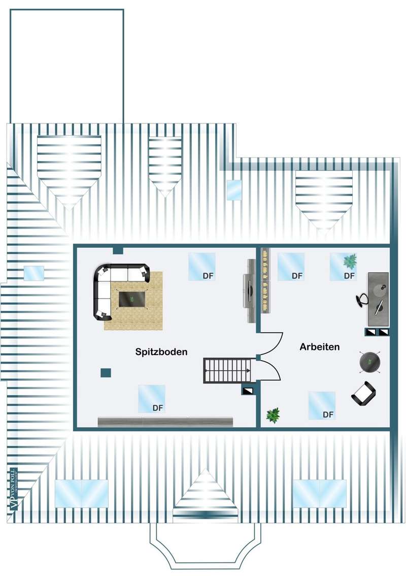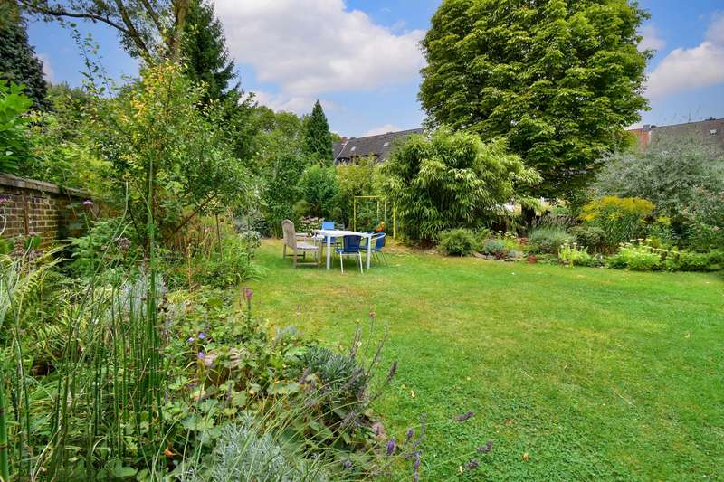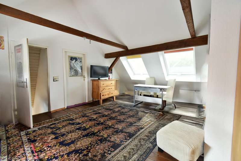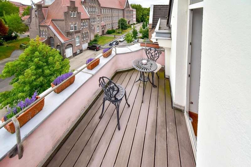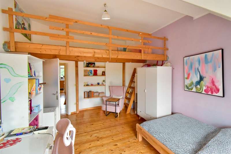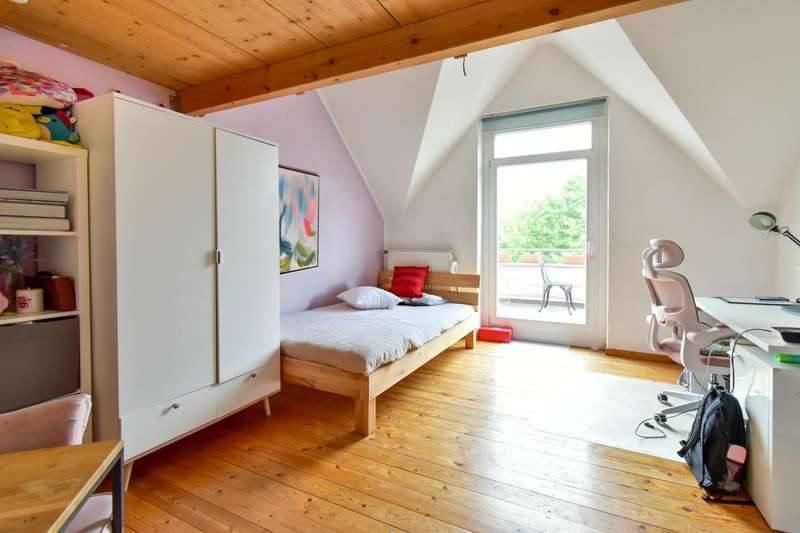 This special maisonette apartment with a generous living space of approx. 183 m² is located in a charming old building from 1905 with only three residential units. The historic character of the building is harmoniously combined with modern living comfort, creating a home full of personality. The beautiful floorboards catch the eye as soon as you enter, giving the entire apartment a warm, inviting atmosphere. All rooms are practically accessible from the hallway. The eat-in kitchen on the top floor forms the heart of everyday life. Under cozy sloping ceilings, you can not only cook here, but also enjoy time together. From there, you have direct access to the roof terrace, which was redesigned in 2024 and has an area of over 16 m² - a perfect place for relaxing summer evenings or sunny breakfast moments. Directly adjacent is the bathroom, which was also renovated in 2024 and is equipped with a modern shower/bathtub and WC. The bedroom or living room impresses with a landing that is not only a visual highlight, but also creates clever storage space. The apartment also has a spacious living room and two further rooms, which are ideal for use as children's or guest rooms. The smaller room has direct access to an approx. 5 m² balcony and offers special charm for the youngest residents with an integrated play area. A practical guest WC completes the room offer and further enhances the living comfort. A staircase in the hallway leads up to the loft, which adds further possibilities to the maisonette. There is a study - perfect for a home office or creative projects - as well as another room that can be converted into living space. A well-kept communal garden and a private cellar room round off the offer. In addition, further cellar rooms (e.g. laundry room, cellar WC, tool room ...) are available to the building community for communal use. The apartment offers a home that harmoniously combines individuality, style and quality of living - and is just waiting to be discovered.