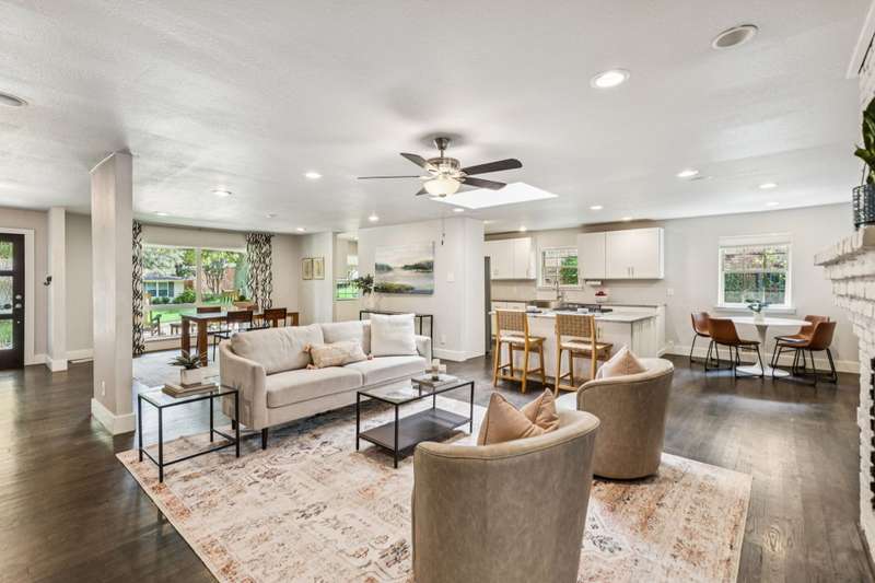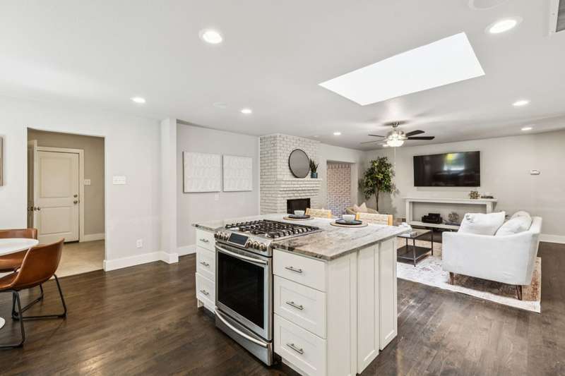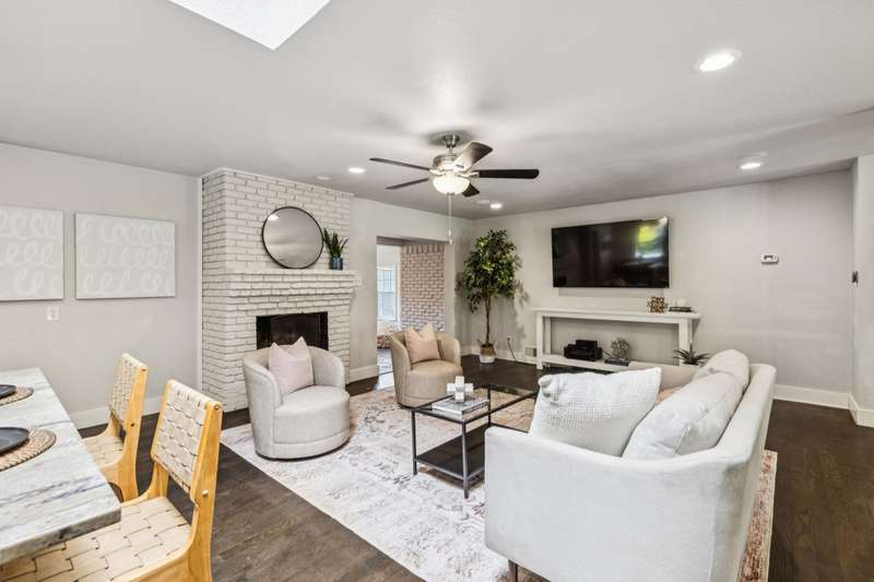 In the heart of Lake Highlands coveted ABC Streets, this updated gem offers over 2,500 sq ft of stylish, comfortable living. The open kitchen shines with modern finishes and flows seamlessly into the dining and spacious living room, where a beautiful fireplace serves as the centerpiece. A versatile additional living space is perfect for a playroom, game room, or cozy den. The primary suite boasts an updated bathroom, while two secondary bedrooms share a well-appointed bath. Outside, enjoy a generous backyard with a charming storage shed and an oversized 2-car garage. Ideally located mid-block on a quiet street, this home blends updated comfort with classic neighborhood charm.