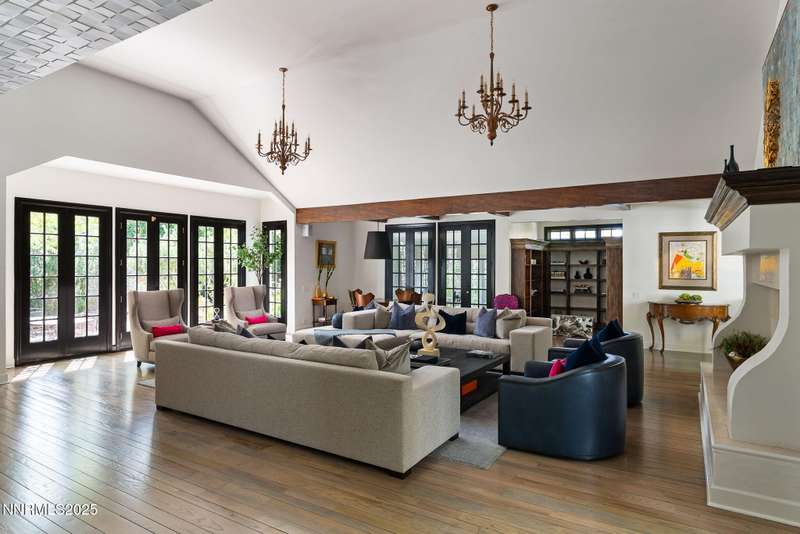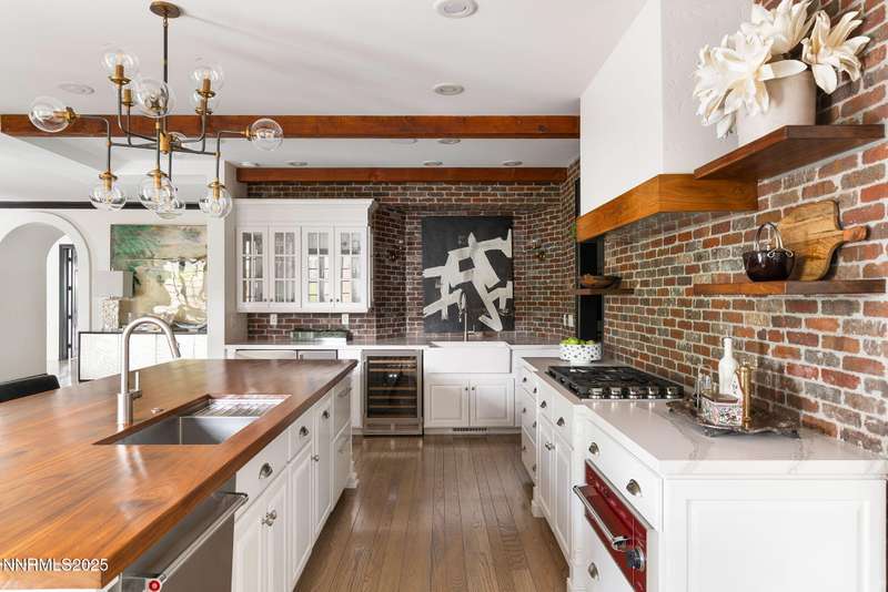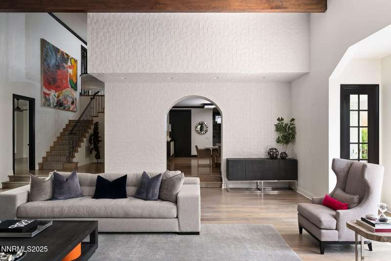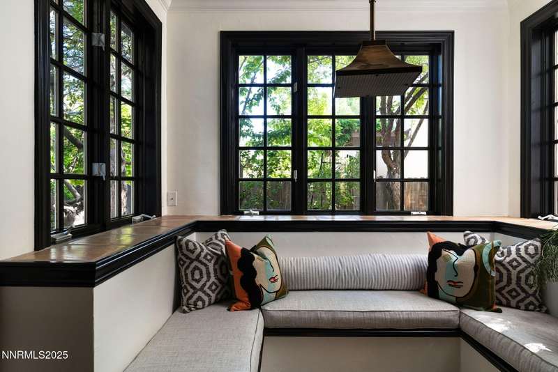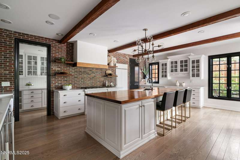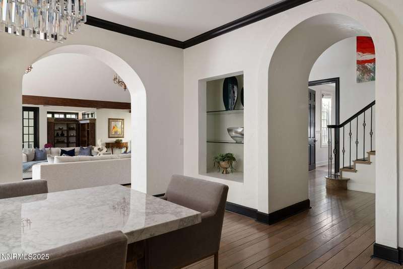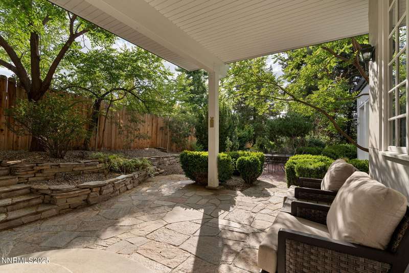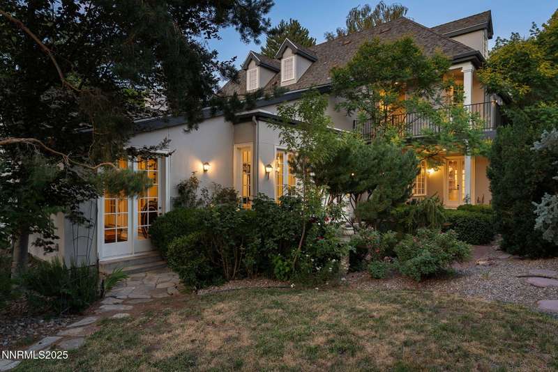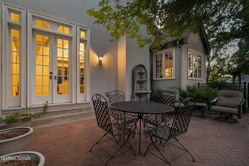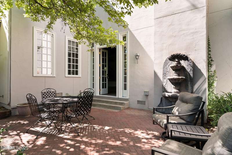 Confident, character-rich, and full of soul, this brick-and-plaster 4-bed/3.5-bath home combines old-world craftsmanship with quiet luxury across 5,699 square feet and a third of an acre. Nestled behind its French-inspired exterior on one of Reno's most storied streets, it features a layered interior with soaring ceilings, artisan finishes, and a floor plan that unfolds into a rhythm of gathering spaces and private retreats. Every detail and corner tells a story, and the right buyer will feel it instantly. From the moment you step into the entry hall, it's clear this isn't a typical home. Artisan plaster walls, solid wood doors, and hand-honed finishes whisper of craftsmanship rarely seen in modern builds. The main-level suite has a fireplace, private terrace, radiant heated floors, and a boutique-worthy closet with floor-to-ceiling built-ins for seamless organization. Upstairs, a two-bedroom wing with a shared lounge and dry bar creates a tucked-away apartment-like zone—perfect for teens, guests, or anyone who values autonomy without absence. A second en-suite bedroom on the main level provides long-term flexibility for guests or multigenerational living. Another vaulted-beam bonus room offers space for a home office, media lounge, or creative studio. Vaulted ceilings with exposed beams and an arched fireplace give the living room architectural weight, while dual chandeliers add a subtle elegance. A grid of French doors and windows shapes the room's rhythm and light. Despite its scale, the space envelops you with a built-in library and corners in which to gather or disappear. Off the living room, a converted garden studio with original brick floors serves as a home gym with views of the lush exterior. The kitchen invites you to make meals, memories, and moods. Brickwork and wood beam ceilings echo the entry and exterior, carrying the home's language forward with warmth and texture. Custom cabinetry with soft-close drawers surrounds high-end appliances—including dual Sub-Zero refrigerator drawers, Café double ovens, Viking warming drawer, and a U-Line ice maker. A DCS Fisher & Paykel gas range with integrated ventilation stands ready for everything from weeknight dinners to holiday feasts. The dumbwaiter from the garage is a functional delight and a favorite party trick. Even the laundry room and functional closet just off the oversized garage have a point of view. With built-in cabinetry and finishes focused on everyday ease, everyday chores feel like a design moment. The garage features generous dimensions and clean finishes, offering storage and work space beyond parking. Outside, a brick path winds through shaded patios, fruit trees, terraced garden beds, and grassy expanses. Multiple seating areas—some open-air, others tucked beneath eaves—offer places to gather, pause, and exhale. A private courtyard—shaped by layers of landscape and framed by brick—has hosted vow renewals, milestone photos, and other meaningful celebrations over the years. A powered outbuilding with a Dutch door, surrounded by irrigated raised planting beds, anchors a corner of the yard with both purpose and potential. And then there's the history of Greenridge itself, one of Reno's original prestige neighborhoods. Developed in the 1930s by Norman Biltz and modeled after luxury subdivisions in Beverly Hills and the East Coast, it once drew names like Doris Duke, Clark Gable, and Marilyn Monroe. Today, the neighborhood has traded celebrity sightings for Halloween magic shows, front-yard wine nights, and strolls with dogs and drinks in tow. People wave from lawn chairs as children roam the curved streets on scooters and bikes, or walk to the nearby golf course for a Coke and fries. Homes like this—so layered, so finished, so cherished—are increasingly rare and even more so in neighborhoods like this.