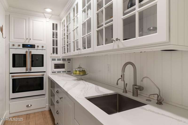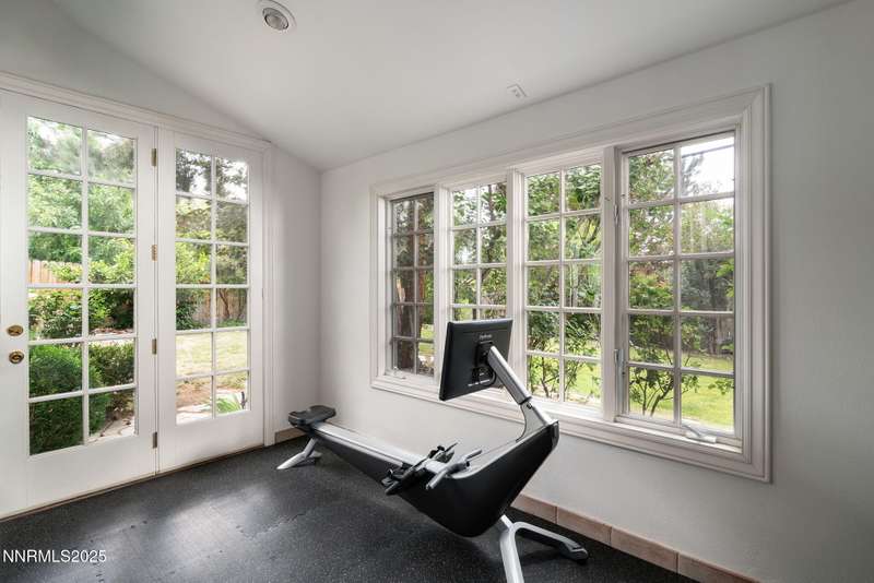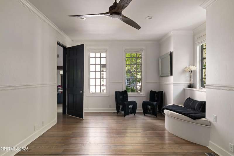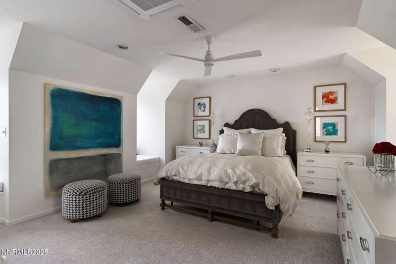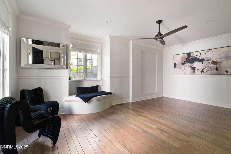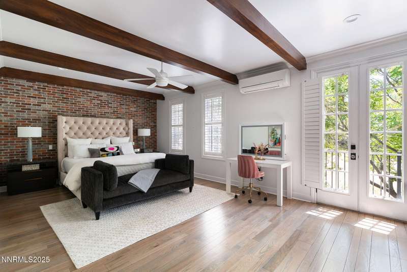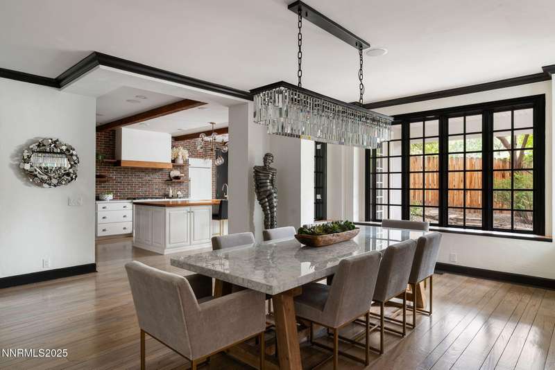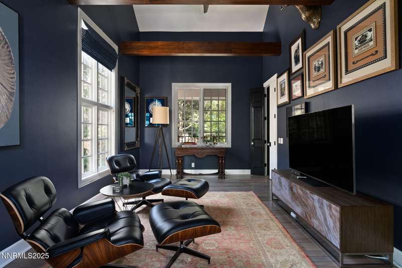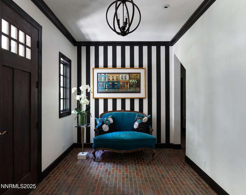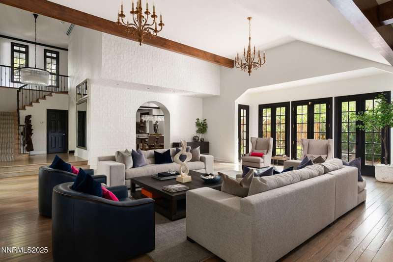 Confident, character-rich, and full of soul, this brick-and-plaster 4-bed/3.5-bath home combines old-world craftsmanship with quiet luxury across 5,699 square feet and a third of an acre. Nestled behind its French-inspired exterior on one of Reno's most storied streets, it features a layered interior with soaring ceilings, artisan finishes, and a floor plan that unfolds into a rhythm of gathering spaces and private retreats. Every detail and corner tells a story, and the right buyer will feel it instantly. From the moment you step into the entry hall, it's clear this isn't a typical home. Artisan plaster walls, solid wood doors, and hand-honed finishes whisper of craftsmanship rarely seen in modern builds. The main-level suite has a fireplace, private terrace, radiant heated floors, and a boutique-worthy closet with floor-to-ceiling built-ins for seamless organization. Upstairs, a two-bedroom wing with a shared lounge and dry bar creates a tucked-away apartment-like zone—perfect for teens, guests, or anyone who values autonomy without absence. A second en-suite bedroom on the main level provides long-term flexibility for guests or multigenerational living. Another vaulted-beam bonus room offers space for a home office, media lounge, or creative studio. Vaulted ceilings with exposed beams and an arched fireplace give the living room architectural weight, while dual chandeliers add a subtle elegance. A grid of French doors and windows shapes the room's rhythm and light. Despite its scale, the space envelops you with a built-in library and corners in which to gather or disappear. Off the living room, a converted garden studio with original brick floors serves as a home gym with views of the lush exterior. The kitchen invites you to make meals, memories, and moods. Brickwork and wood beam ceilings echo the entry and exterior, carrying the home's language forward with warmth and texture. Custom cabinetry with soft-close drawers surrounds high-end appliances—including dual Sub-Zero refrigerator drawers, Café double ovens, Viking warming drawer, and a U-Line ice maker. A DCS Fisher & Paykel gas range with integrated ventilation stands ready for everything from weeknight dinners to holiday feasts. The dumbwaiter from the garage is a functional delight and a favorite party trick. Even the laundry room and functional closet just off the oversized garage have a point of view. With built-in cabinetry and finishes focused on everyday ease, everyday chores feel like a design moment. The garage features generous dimensions and clean finishes, offering storage and work space beyond parking. Outside, a brick path winds through shaded patios, fruit trees, terraced garden beds, and grassy expanses. Multiple seating areas—some open-air, others tucked beneath eaves—offer places to gather, pause, and exhale. A private courtyard—shaped by layers of landscape and framed by brick—has hosted vow renewals, milestone photos, and other meaningful celebrations over the years. A powered outbuilding with a Dutch door, surrounded by irrigated raised planting beds, anchors a corner of the yard with both purpose and potential. And then there's the history of Greenridge itself, one of Reno's original prestige neighborhoods. Developed in the 1930s by Norman Biltz and modeled after luxury subdivisions in Beverly Hills and the East Coast, it once drew names like Doris Duke, Clark Gable, and Marilyn Monroe. Today, the neighborhood has traded celebrity sightings for Halloween magic shows, front-yard wine nights, and strolls with dogs and drinks in tow. People wave from lawn chairs as children roam the curved streets on scooters and bikes, or walk to the nearby golf course for a Coke and fries. Homes like this—so layered, so finished, so cherished—are increasingly rare and even more so in neighborhoods like this.