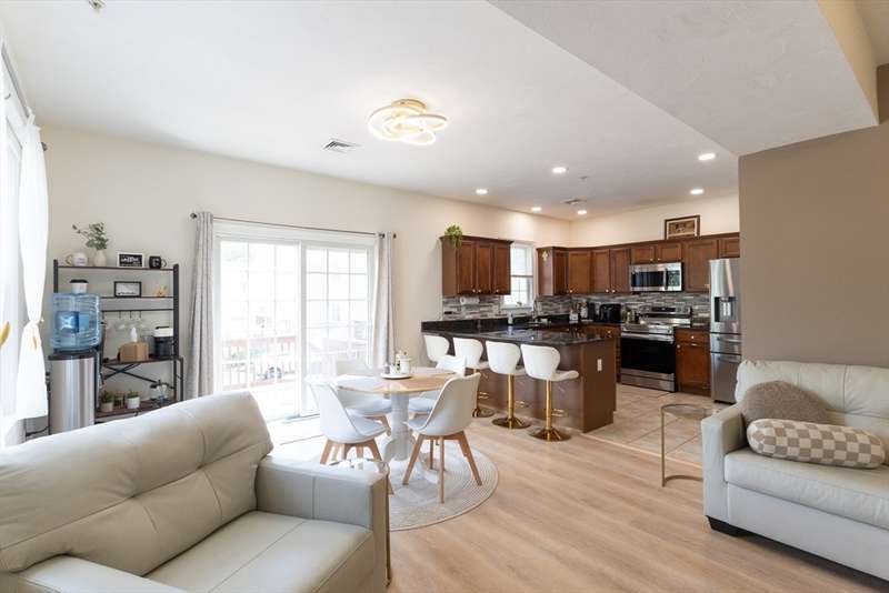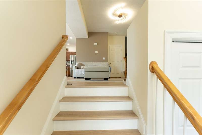 Welcome to 6 Knotts Street in Hudson's desirable Knott's Clearing! Built in 2005, this well-placed townhouse offers 1,665 sq. ft. of bright, open living space. The modern kitchen features granite counters, stainless steel appliances, and a breakfast bar. The dining area leads to a private deck, ideal for BBQs. A spacious living room boasts cathedral ceilings, hardwood floors, and a cozy gas fireplace. Upstairs, you'll find two bedrooms, including a main suite with a full bath, plus a second full bath and laundry. The finished basement adds bonus space perfect for an office or rec room with access to the one-car garage and private driveway. Enjoy central heat/AC, low-maintenance living, and close proximity to downtown shops, dining, and highways. A must-see!