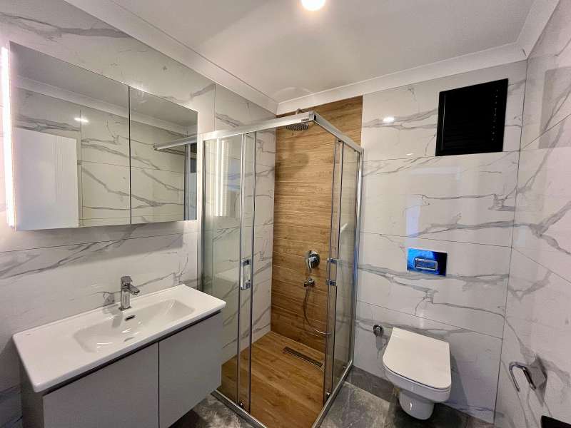 The apartments in Alanya for sale are 577 meters from Cleopatra Beach, 2.8 km from Alanya Castle, 3 km from the popular bars street, 5 km from Alanyum Shopping Center, and 40.8 km from Alanya - Gazipasa Airport.