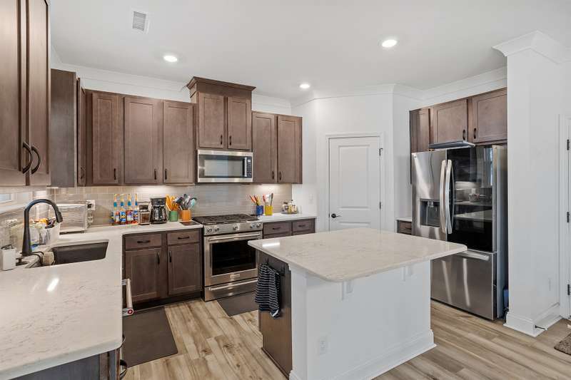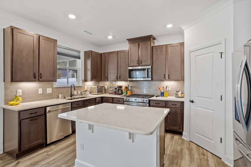 Spacious 2451 SF, quality-built KB Home in beautiful Timberleaf with 2-car garage! 2023 solid KB craftsmanship feels brand new! Southern exposure, 5 bedrooms, & 3 full baths! This is an ENERGY STAR CERTIFIED home, which means improved energy efficiency, enhanced comfort, better indoor air quality, lower energy bills, and higher value! Kitchen has center island, stainless steel appliances, gas range, abundant storage, and Silestone countertops. Fridge & W&D convey! Open central living area consists of living room, dining, and kitchen. Covered porch in front, expansive 10.5' x 20' screened porch in back overlooking fenced yard. 9 ft ceilings on main floor. Ceiling fans throughout. Two walk-in closets, plenty of storage. Primary suite has large bathroom with separate shower and tub. Low maintenance exterior of fiber cement siding. Walkable neighborhood. Unbeatable location: short commute to Duke Regional Hospital, Duke University, RTP, RDU, Falls Lake, and lively downtown Durham - including Durham Performing Arts Center, Durham Bulls Athletic Park, shopping, dining, and entertainment.
