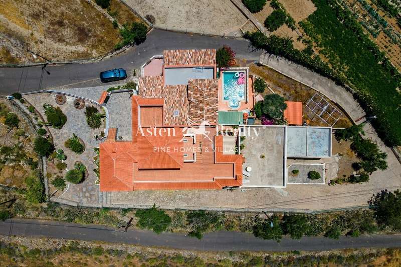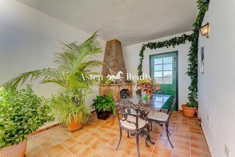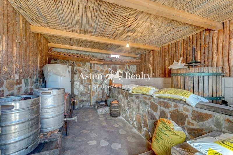 Agricultural land surrounds the house with stepped plots covered in white lava stones to keep in the moisture of the crops. An on-site bodega with its own wine press allows any budding wine connoisseur to make their own wine.