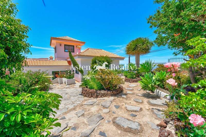 The garden full of flowers with abundant roses, bougainvillea, tajinastes and many lilies making it a blaze of colour.