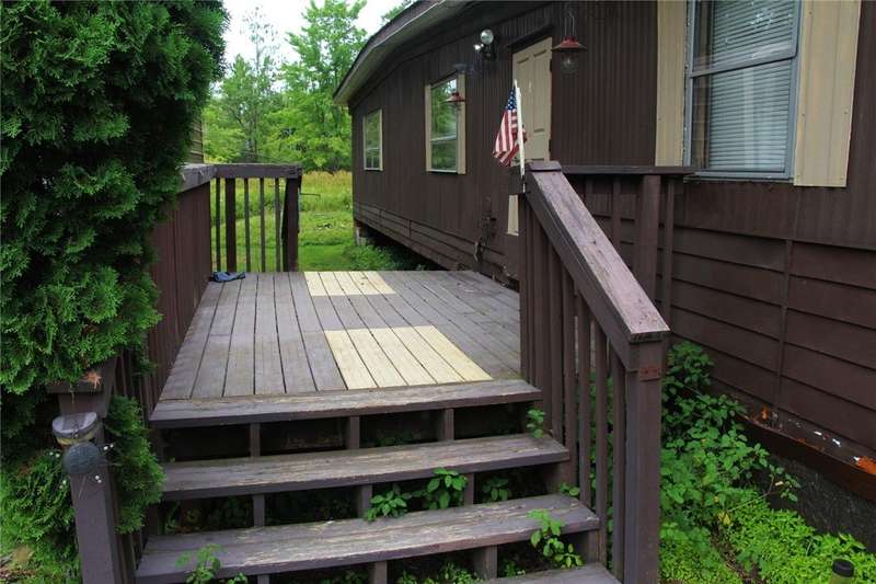 Tucked deep in Black River Falls State Forest, this 2-bed, 1-bath manufactured home offers 900 sq ft of cozy living space on a secluded 1/4 acre lot. Enjoy a spacious kitchen, large living room and a 2-car garage. The backyard opens directly into towering pine woods -- perfect for wildlife lovers and hunters alike. Recent upgrades include leveling the home, updated plumbing, underground electric, new siding on the peaks, exterior paint and a seeded front lawn. A steel roof is protected by a secondary truss roof for added durability. Ideal as a weekend cabin or private hunting lodge, this property offers unmatched privacy -- civilization is 10-20 miles away in any direction. Carpet is dated, but priced accordingly so you can make it your own!