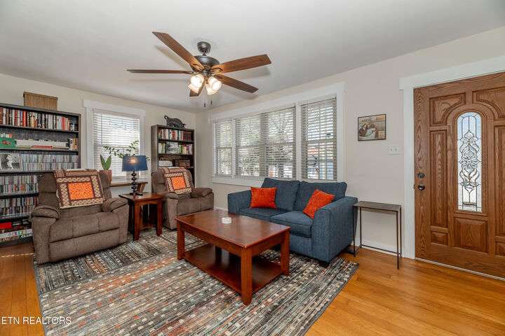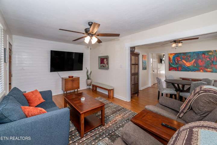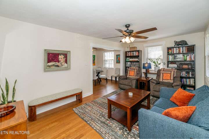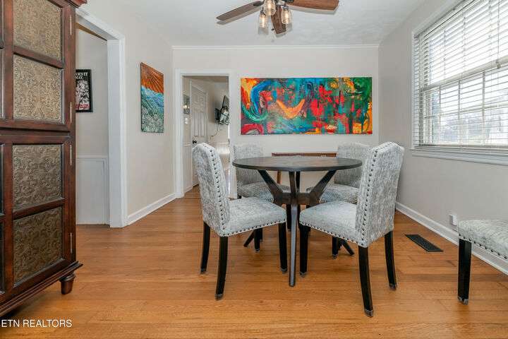 Charm and character abound in this cottage nestled in a walkable North Knox neighborhood, less than 10 minutes to downtown, UT campus, and interstate systems and on a dead end street. 2 BR's, 1.5 BTH's with gorgeous, refinished hardwood flooring. Open and airy kitchen is bathed in natural light from the connecting sunroom and there is a formal dining area as well. The kitchen has a stainless farmhouse sink and appliances convey. A remodeled half bath with new marble floor, vanity, toilet and light fixture is just off the kitchen/sunroom. There is also a laundry room with extra storage and the washer/dryer convey. New HVAC, kitchen refrigerator and ceiling fans 2024! Cozy patio area, spacious fenced back yard with large storage shed, screened in porch and 1 car carport. Ring cameras convey as well. Don't miss this fantastic opportunity! Please see Agent Instructions before making offer.