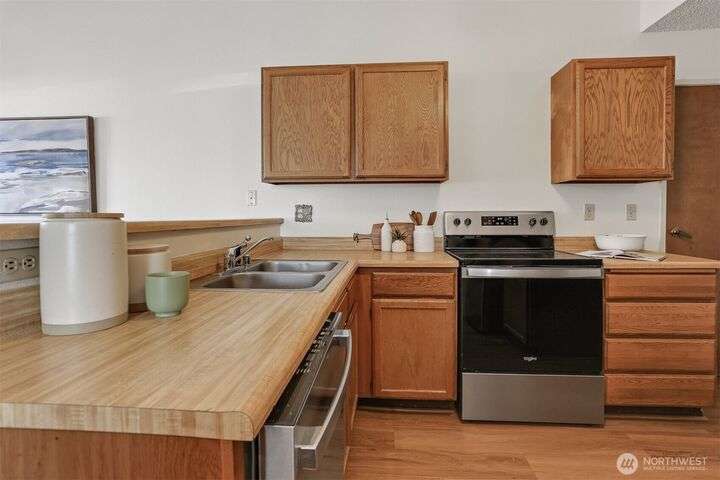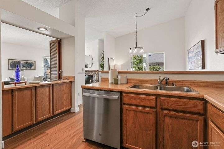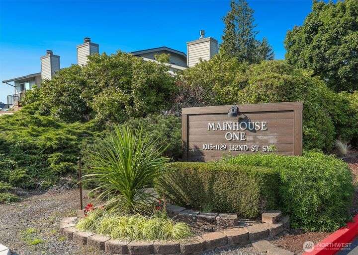 Mainhouse One - highly sought after condo home with new paint, new floors and many updates! Pleasant well managed community with lovely gardens, single family style units and private garages. Enter the living room with vaulted ceilings, fireplace, wet bar and large windows to let the sunshine in. Kitchen with stainless appliances, ample counter space and eating bar. Dining room opens onto patio for garden entertaining al fresco. This Rambler style home has a spacious primary suite with large closets and full bath plus 2 more nice size bedrooms and full hall bath. Enjoy the clubhouse, outdoor pool & sport court. Mukilteo Schools. Near buses, 99, 405 and I5. Close to Boeing, Paine Field, Lake Stickney Park, shops, restaurants and more!