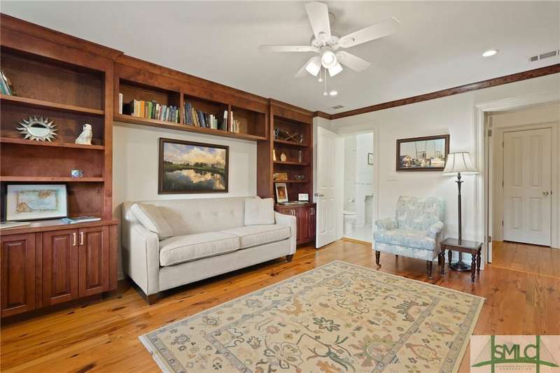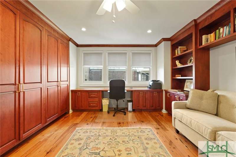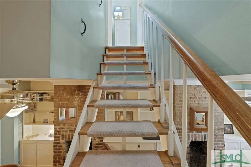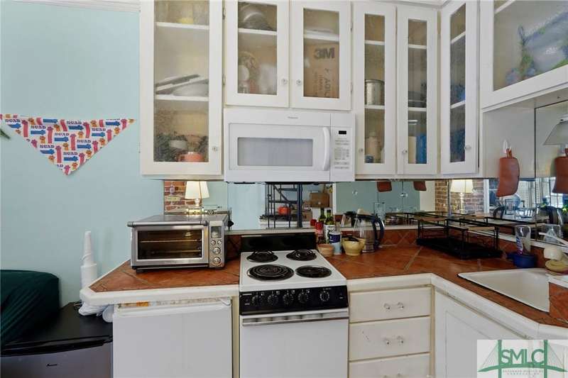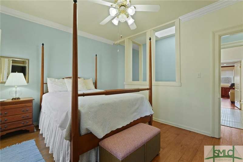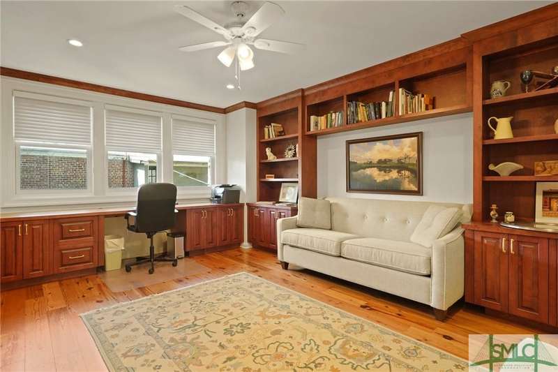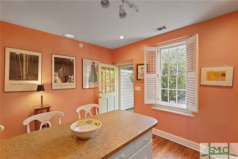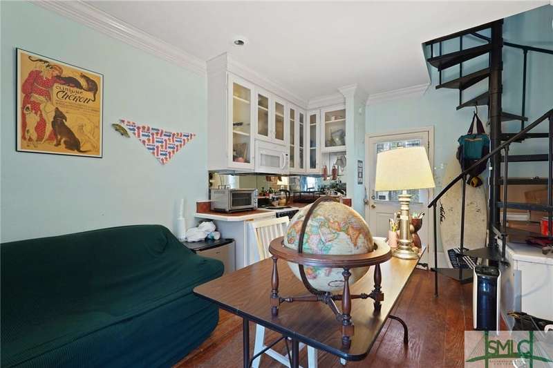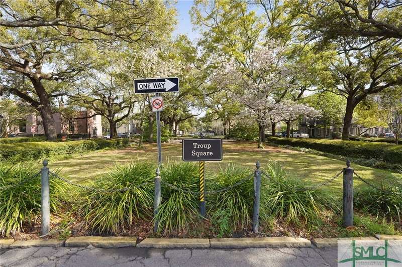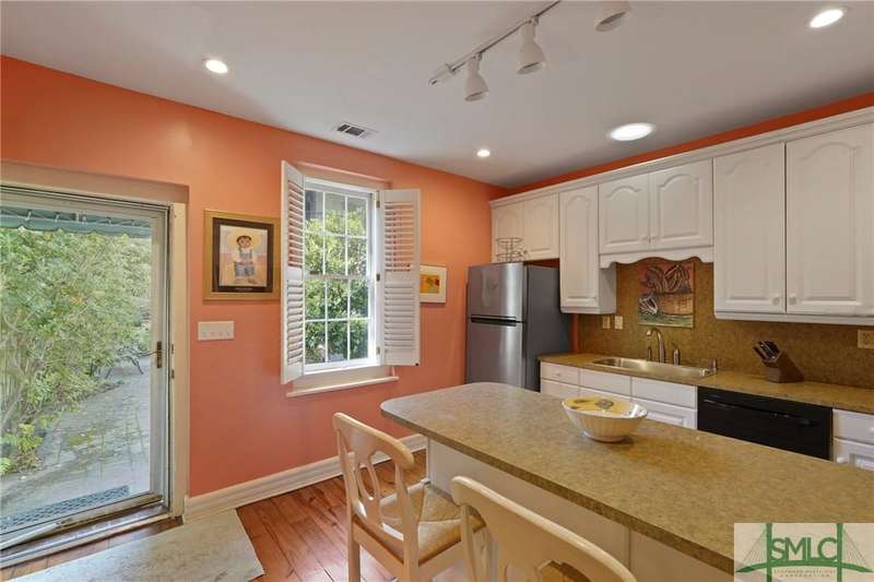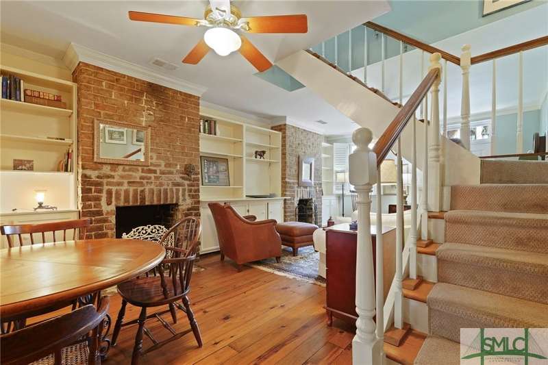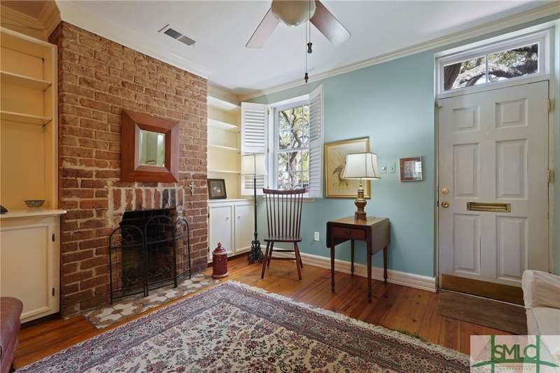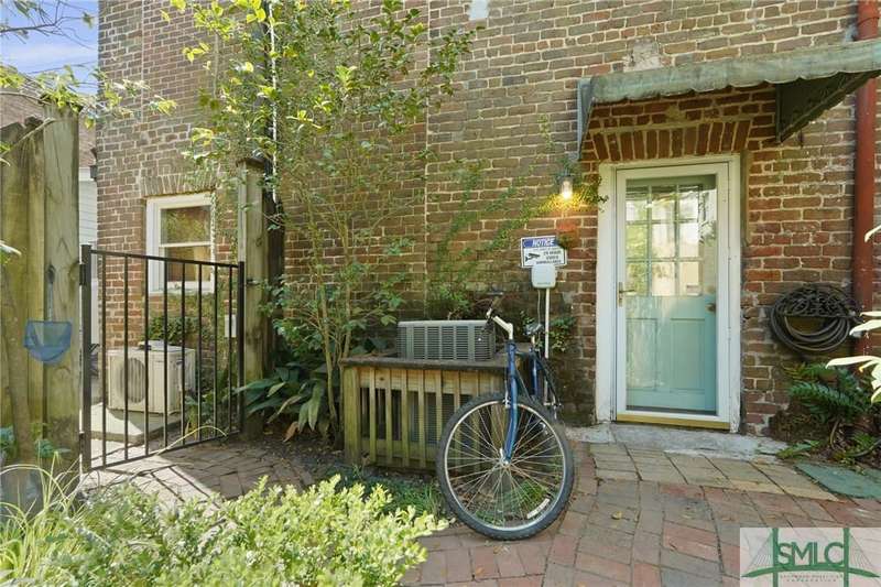 Seated on picturesque famed Jones street. This 2 story 2 bedroom 1 1/2 bath townhouse and carriage house is being sold furnished. The open airy living space with twin fireplaces, heart pine floors throughout, beautiful natural light, built in bookcases and dramatic open staircase make this space so special. The sunlight filled kitchen with center island leads into a beautiful garden. A custom designed suite addition off of second level done by well known contractor, David Bloomquist, features built in bookcases and floor to ceiling custom closets, sleeper sofa and wingback chair all banked by a wall of windows. The income producing 2 story carriage house features a fireplace, cozy kitchen and a spiral staircase leading to the second level. Ideally located between both Troupe and Whitfield squares is within easy walking distance of downtown Savannah fine dining, shopping and activities as well as Forsyth Park and just down the street from Kroger.