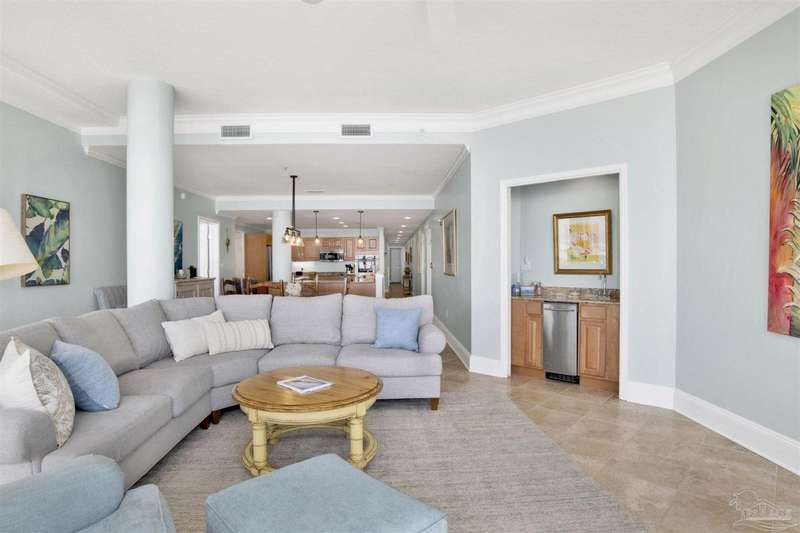 BREATHTAKING 7TH FLOOR RESIDENCE WITH AWE-INSPIRING ISLAND VIEWS! WELCOME TO SEA WATCH, WHERE OWNERS AND GUESTS EXPERIENCE ONE OF PERDIDO KEY'S MOST SECLUDED AND UNCROWDED BEACHES. EACH RESIDENCE FEATURES PRIVATE ELEVATOR ENTRY WITH A CONVENIENT SHOWER TO RINSE OFF SAND, TWO ASSIGNED PARKING SPACES (ONE COVERED AND ONE UNCOVERED), AND A MINIMUM ONE-YEAR RENTAL POLICY FOR ADDED PRIVACY. This impressive 2,741 sq. ft. 4-bedroom/4.5-bathroom layout is among the finest on the island, featuring a Gulf-front Primary Suite and separate hallways leading to each guest bedroom, with 3 of the 4 bedrooms having access to balconies, ensuring everyone enjoys amazing water views. The open-concept living/dining area boasts stunning gulf views with floor-to-ceiling windows, complete with wet bar and NEW ice maker for entertaining. Storage is abundant in this beach home, with a laundry room, walk-in closets in every bedroom and additional hallway storage, including a large closet to hold an extra refrigerator and plenty of shelving. The spacious primary bathroom offers a soaking tub, separate shower, and ample storage, including added linen cabinetry. Sea Watch owners enjoy wonderful amenities including a Gulf-front outdoor pool (heated seasonally) with large covered area to get out of the sun, fitness center, billiards room and one of the most uncrowded beaches on the island! THIS IS THE LUXURY BEACH HOME YOU HAVE BEEN DREAMING OF!