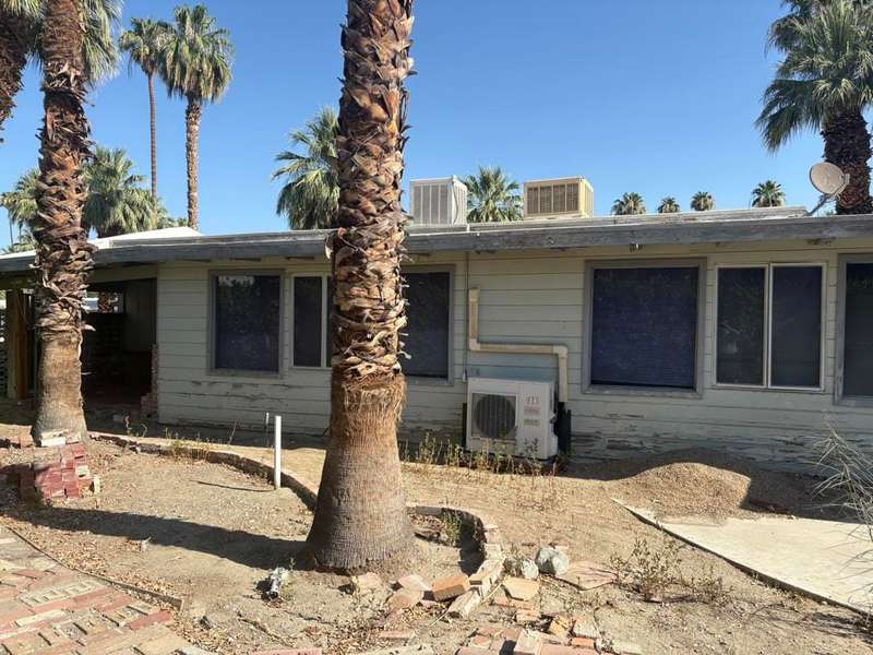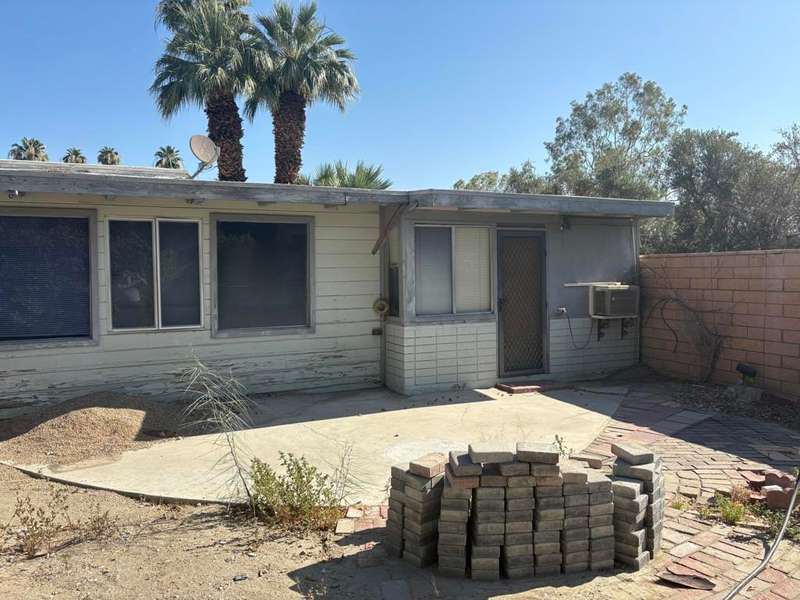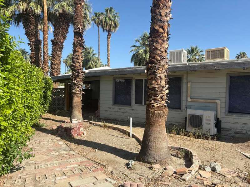 Rare Land Ownership Opportunity in Historic Blue Skies Village! Located on a peaceful cul-de-sac within this iconic 55+ gated community, this 1960 home offers a unique chance to own the land--one of the many benefits in Blue Skies. The existing structure is in need of extensive renovation or replacement, making it an ideal site for a new double-wide home customized to your taste. The lot is directly adjacent to the scenic Butler-Abrams Trail, perfect for morning walks or peaceful bike rides along the 2.14-mile loop between Frank Sinatra Dr. and Country Club Dr.Founded in the 1950s by Bing Crosby and a group of Hollywood luminaries, Blue Skies Village is steeped in history and charm. With only 141 homes, the community is intimate and well-maintained, featuring a saltwater pool and spa, billiard room, card room/library, exercise room, and the architecturally significant Tanner Hall, designed by mid-century master William F. Cody. The low $360 monthly HOA includes water, trash, cable TV, and internet. Whether you're ready to restore a classic or start fresh, this property offers unmatched potential in one of Rancho Mirage's most beloved enclaves.Take advantage of this blank canvas to create your own get-away or full-time residence in one of the most sought-after communities. Public transportation is available right outside the main gate, and you are minutes away from shopping, dining, entertainment and world-class medical facilities at Eisenhower Medical Center. Don't miss this exciting opportunity!