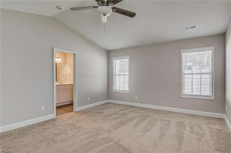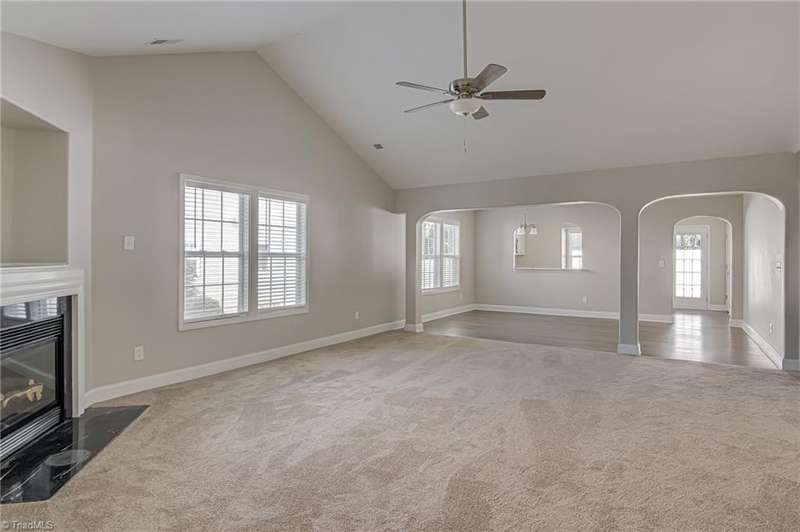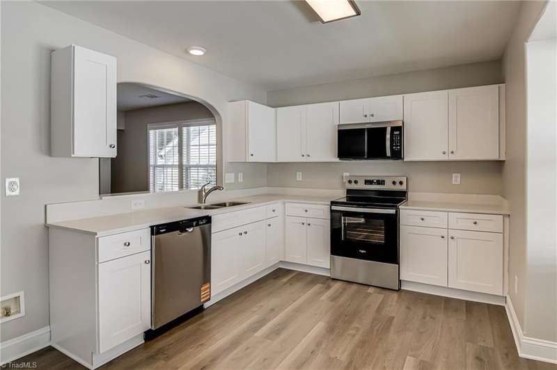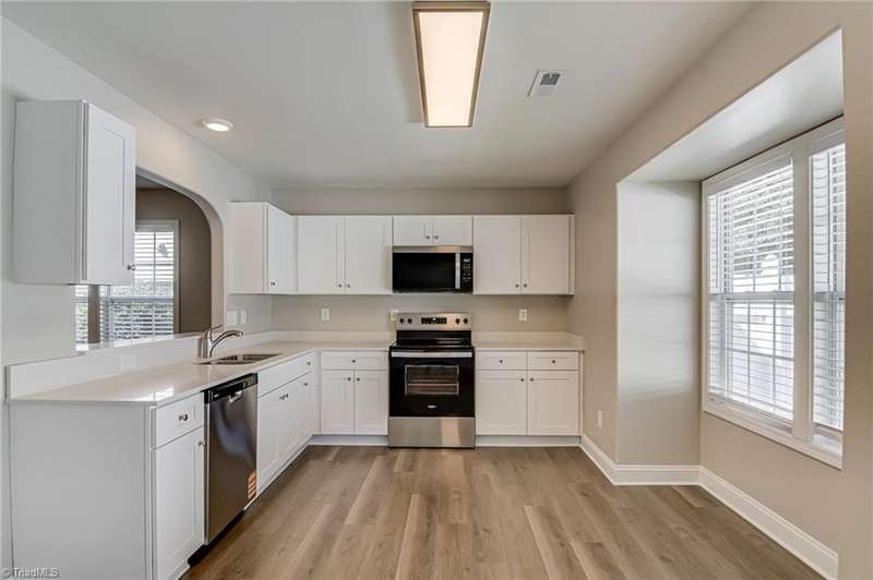 Bright & beautiful in Bethabara Trace! This move-in ready home features a fabulous floor plan with fresh paint throughout, new flooring, lots of new fixtures & hardware, & so much more. Spacious living room with a soaring vaulted ceiling, fireplace & open concept. Freshly upgraded kitchen with new cabinets, appliances & quartz countertops. The primary suite also features a vaulted ceiling and walk in closet with an updated en suite bath that presents a new double vanity with quartz countertops, garden tub, & separate shower. Two additional & sizable bedrooms on the main level with another updated full bath. Upstairs bonus room provides nice additional living space. Fenced backyard!