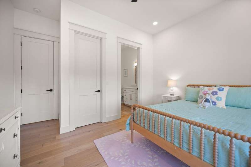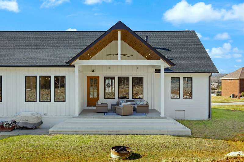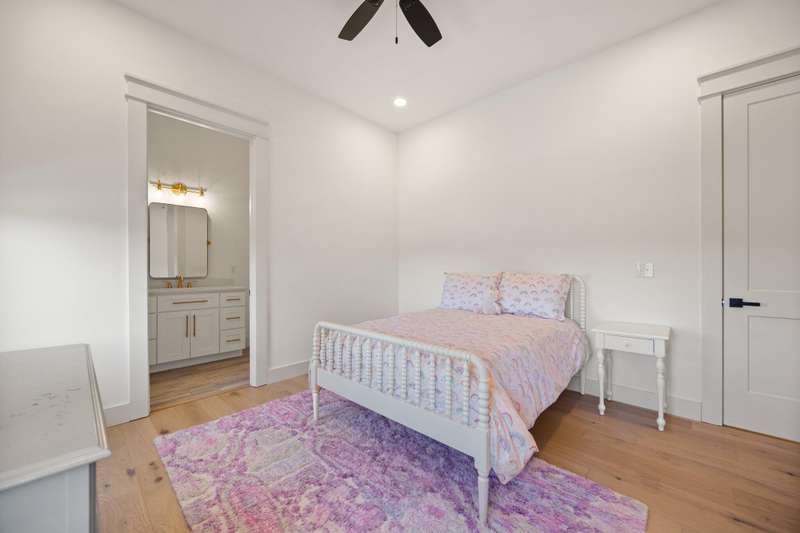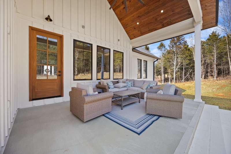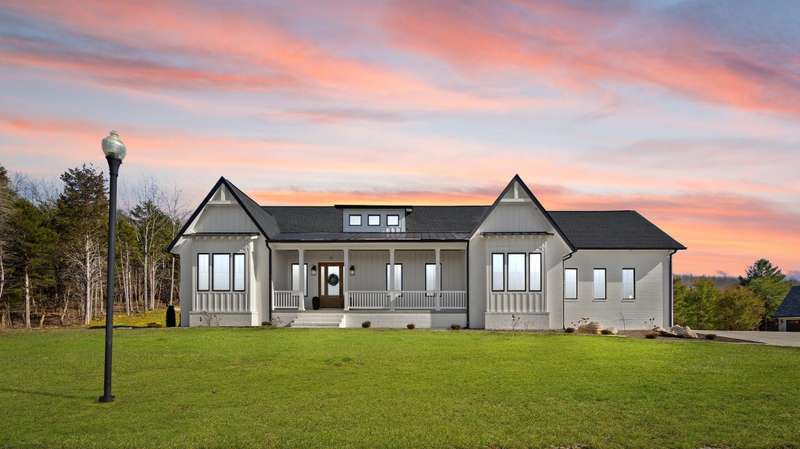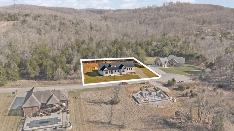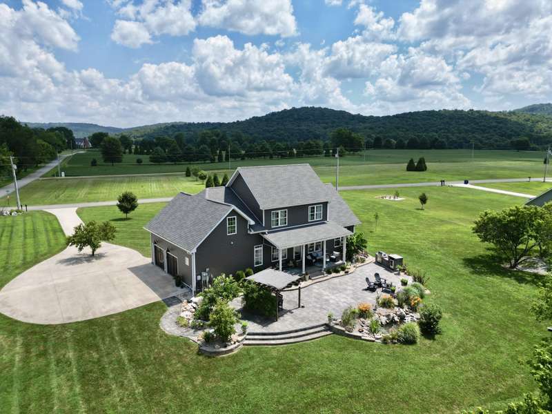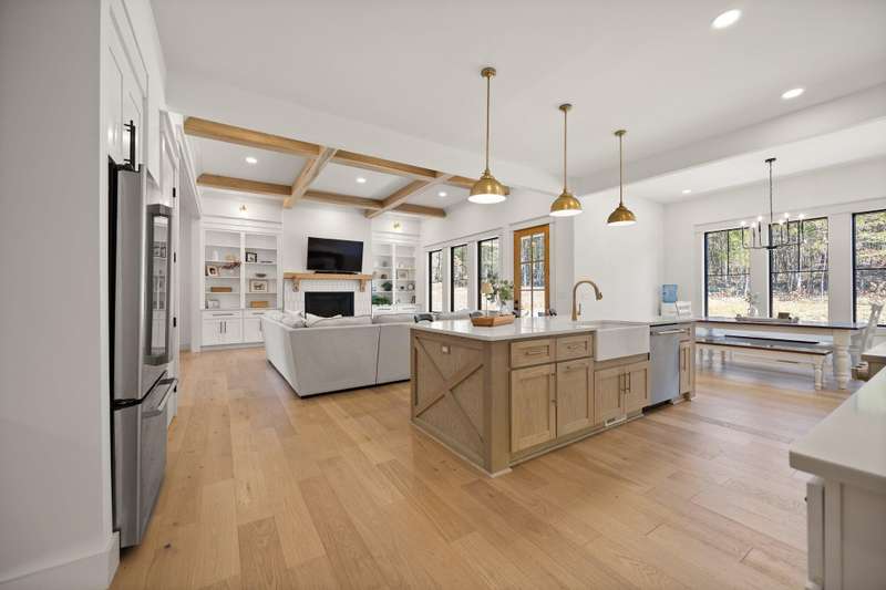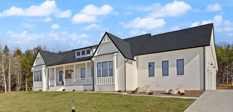 Modern Farmhouse Perfection! Built in 2023, this contemporary farmhouse offers the perfect blend of beauty and peaceful living. Situated at the end of a quiet cul-de-sac, this 5-bedroom, 4.5-bathroom home is well designed for families and entertaining. The heart of the home is the stunning kitchen, open to the dining area and family room with a gas fireplace and wood-beamed ceiling. Hardwood floors and carefully selected finishes like quartz countertops, tile and beautiful fixtures add luxury throughout. The main level offers four bedrooms, plus a flexible bonus room perfect for a home office, playroom, or exercise space. The primary suite is a true retreat, with a spa-like bathroom, freestanding tub, gorgeous tiled shower, and double vanities. The upstairs guest suite has its own full bath and provides a comfortable area for visitors. Closets and storage cubbies are abundant. 3rd garage bay has great potential as a shop or hobby area. Large windows create an inviting atmosphere with plenty of natural light. The covered patio in back provides woodland views, perfect or entertaining or quiet enjoyment. Modern design and a peaceful, convenient location make this an exceptional home.