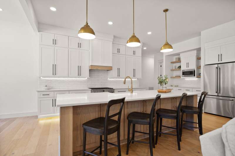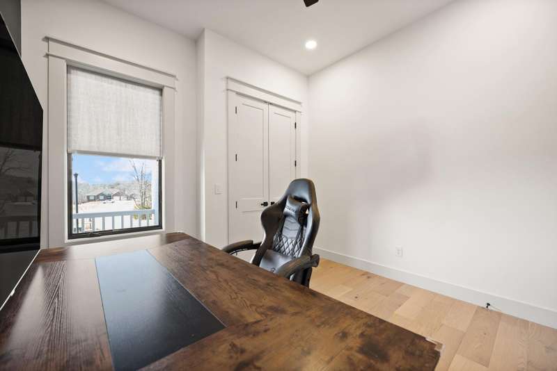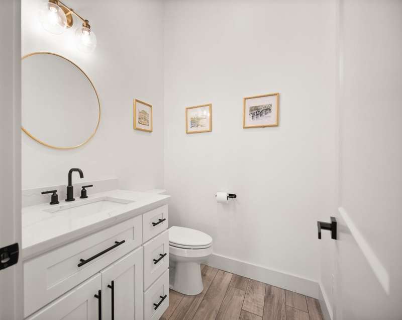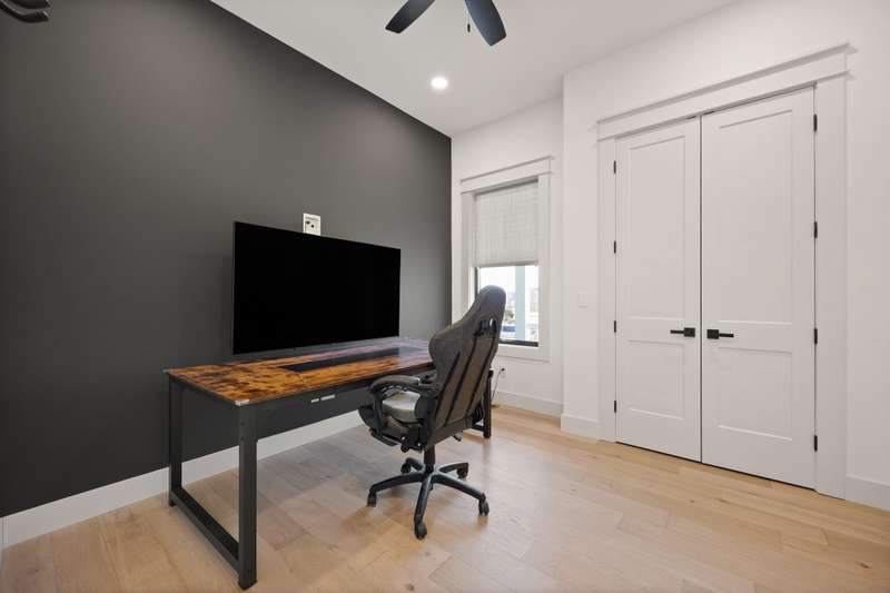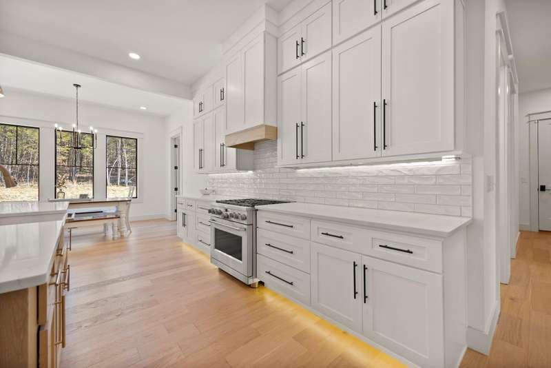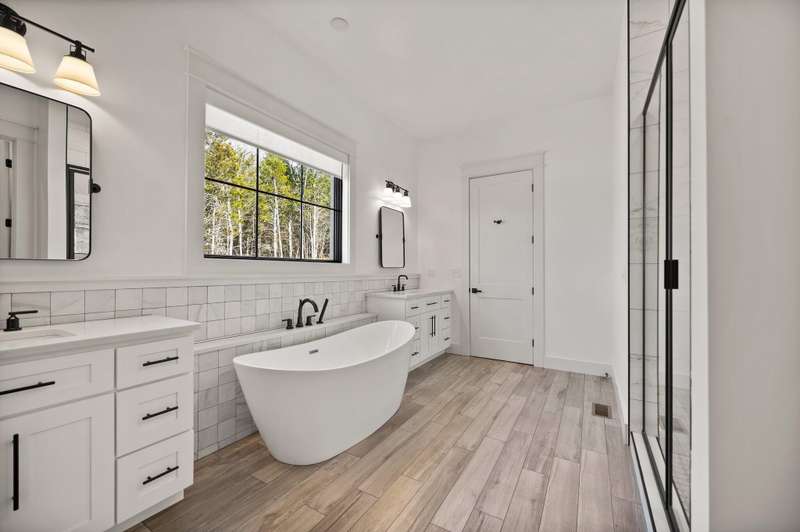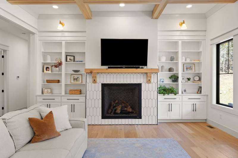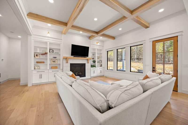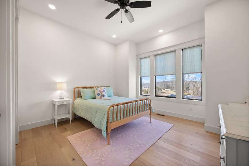 Modern Farmhouse Perfection! Built in 2023, this contemporary farmhouse offers the perfect blend of beauty and peaceful living. Situated at the end of a quiet cul-de-sac, this 5-bedroom, 4.5-bathroom home is well designed for families and entertaining. The heart of the home is the stunning kitchen, open to the dining area and family room with a gas fireplace and wood-beamed ceiling. Hardwood floors and carefully selected finishes like quartz countertops, tile and beautiful fixtures add luxury throughout. The main level offers four bedrooms, plus a flexible bonus room perfect for a home office, playroom, or exercise space. The primary suite is a true retreat, with a spa-like bathroom, freestanding tub, gorgeous tiled shower, and double vanities. The upstairs guest suite has its own full bath and provides a comfortable area for visitors. Closets and storage cubbies are abundant. 3rd garage bay has great potential as a shop or hobby area. Large windows create an inviting atmosphere with plenty of natural light. The covered patio in back provides woodland views, perfect or entertaining or quiet enjoyment. Modern design and a peaceful, convenient location make this an exceptional home.