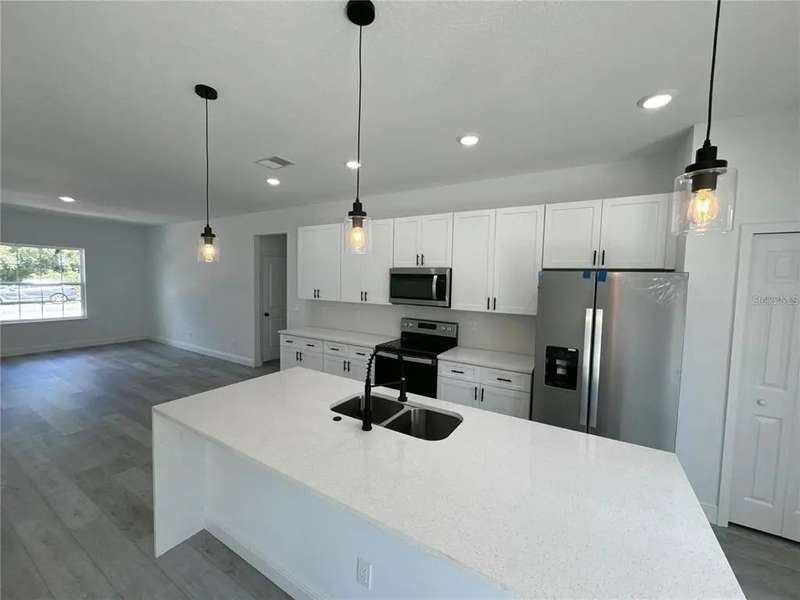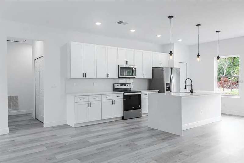 One or more photo(s) has been virtually staged. **New construction **Move in ready **No HOA, No CDD, Beautiful brand-new 4 bedroom, 2 bathroom home featuring 1,774 sq ft of heated living space with a desirable split and open floor plan. The modern kitchen boasts quartz countertops, soft-close drawers, and overlooks the spacious living and dining areas—perfect for entertaining. The master suite offers dual sinks and a walk-in shower, creating a comfortable and private retreat. Conveniently located less than a mile from Horizon Academy and just 15 minutes from Paddock Mall, restaurants, and shopping. This move-in ready home combines style, functionality, and a prime location—don’t miss out!