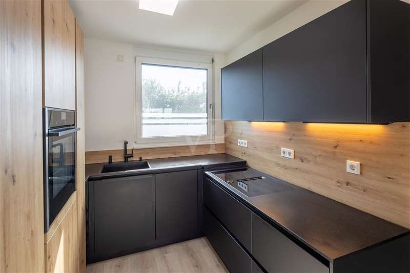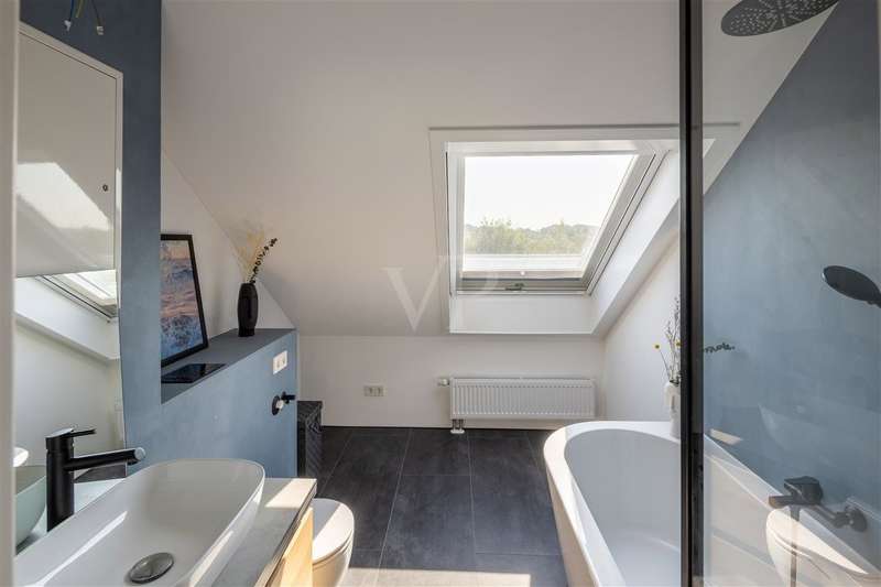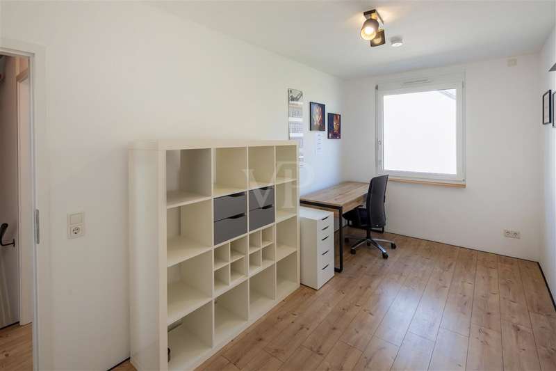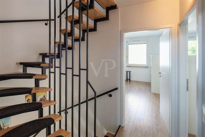 For sale is a modern terraced corner house, which was completed in 2020 in solid KfW 55 construction and is characterized by its energy efficiency (energy class A). With a living space of approx. 119.00 m² on three floors and a plot area of approx. 236 m², this house offers ideal conditions for comfortable living. On the first floor, you will find an open-plan living and dining area with a modern fitted kitchen that includes a high-quality marble worktop and leaves nothing to be desired. Equipped with an induction hob, an extractor fan, an oven, a dishwasher and a fridge-freezer - all Neff appliances - cooking here is a pleasure. The living area is fitted with laminate flooring, which creates a warm atmosphere. The triple-glazed plastic windows with roller shutters offer optimum insulation and privacy. A guest WC completes the space on this level. The underfloor heating in the living area provides cozy warmth. The upper floor comprises two spacious bedrooms with high-quality laminate flooring. The daylight-flooded bathroom has a shower and is lined with vinyl. A utility room completes the space available on this floor. The attic area provides the master bedroom, complemented by a further bathroom with bathtub and two storage rooms, one of which can be used as a dressing room. This well thought-out room layout allows you to create your own individual dream home. The outdoor area offers a terrace with a patio cover, equipped with an awning and a front awning to provide shade in the midday hours. The adjoining green area around the house is easy to maintain and offers space for relaxing hours outdoors. There is also a garage and an additional parking space. Practical additions such as a ventilation system, a rainwater barrel and two lockable garden cupboards round off the offer. LAN cabling in every room ensures that modern communication and entertainment technology can be easily installed. This as-new home offers you and your family a high quality of life in a contemporary environment. Arrange a viewing appointment to see the benefits of the property for yourself.