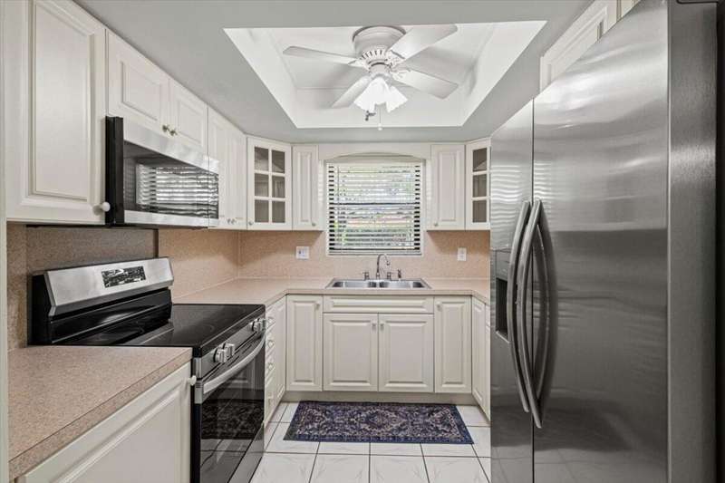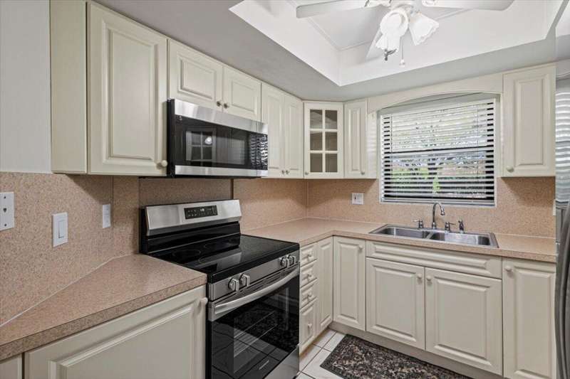 Lovely open airy and bright first floor condo in the beautiful immaculately maintained gated 55+ community of South River. This freshly painted unit includes brand new kitchen appliances (Aug 2025) AC 2023, updated kitchen and bathrooms, and a murphy bed cabinet with brand new mattress. Resort style amenities include large clubhouse (with full kitchen for events), heated/chilled pool, fitness center, library, billiards..play tennis, pickleball, bocce ball, shuffleboard, or go fishing on the dock.. or relax on a bench at Riverfront park.. boat ramp with ocean access and boat and RV storage on property.. lake side benches and street lit sidewalks to meander the entire length of community.. minutes away from golf, dining, shopping, hospitals, downtown Stuart, FL turnpike and I-95.. a gem!!