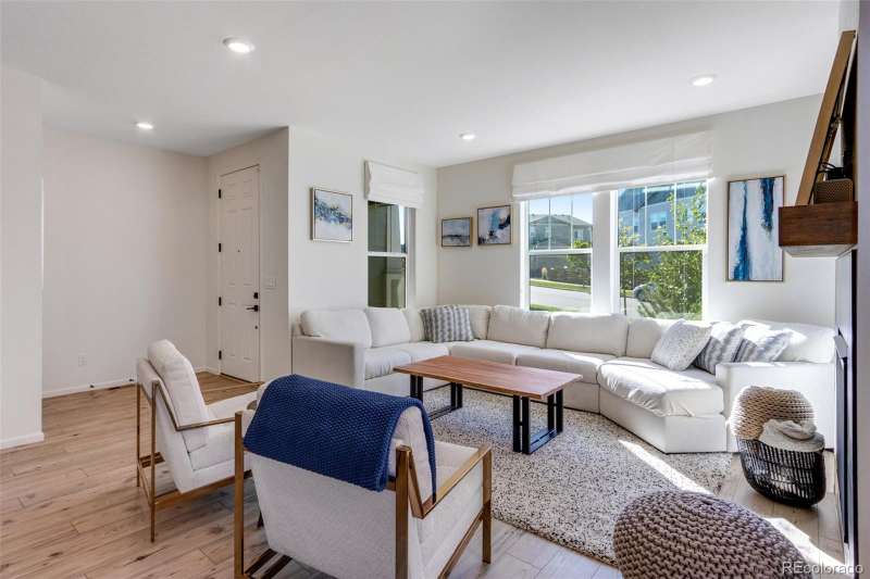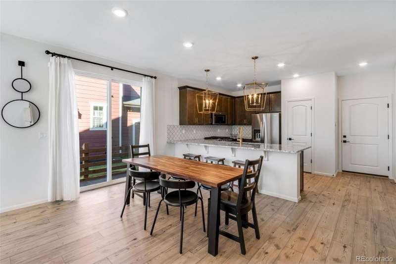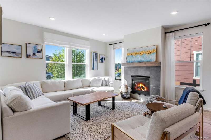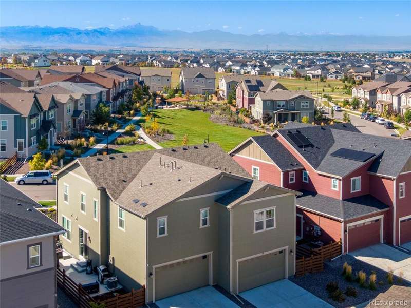 Stunning 4-bed, 4-bath duplex in desirable Colliers Hill in Erie offers the perfect blend of modern upgrades, comfort, and unbeatable location! You might mistake this home for one of the models as you walk into the beautifully designed, open main level! A great feature of this home is the luxurious kitchen that includes a large peninsula with granite countertops, soft close cabinets and upgrades to the stainless-steel Whirlpool appliances and lighting. Upgraded luxury vinyl plank flooring adds warmth and durability, while the convenient up/down blinds provide both style and privacy. You will enjoy sitting in your living room next to your gas fireplace and looking out over the quiet park just across the street. The upper level includes two spacious secondary bedrooms, a full bathroom, loft and a gorgeous primary suite with breathtaking mountain views, a large walk-in closet, and a luxurious 5-piece bath. The homes fully finished basement provides a great additional entertaining space, along with a nicely-sized bedroom and bathroomideal for guests. The luxury continues outside with the beautiful stamped concrete patio and the low maintenance of the fully xeriscape yard. Across the street from the peaceful park, the homes positioning captures great views and extra charm. The 2-car alley-loaded garage offers convenient access and curb appeal. Colliers Hill residents enjoy an exceptional lifestyle with two community pools, a large clubhouse, and miles of scenic trails, including a new trail that will connect directly to Old Town Erie. Located near Erie High School and Soaring Heights, this home is also just minutes from the future SVVSD elementary school and a planned town park. Plus, a new nearby shopping center with dining options has already broken ground and is only about half a mile away. With all of Eries exciting new amenities and developments on the horizon, this home is an incredible buy in one of the areas most sought-after neighborhoods!
