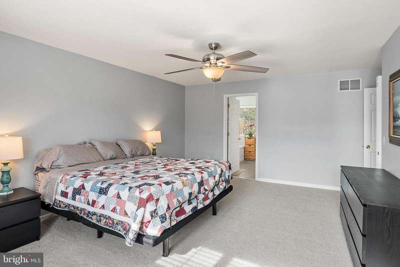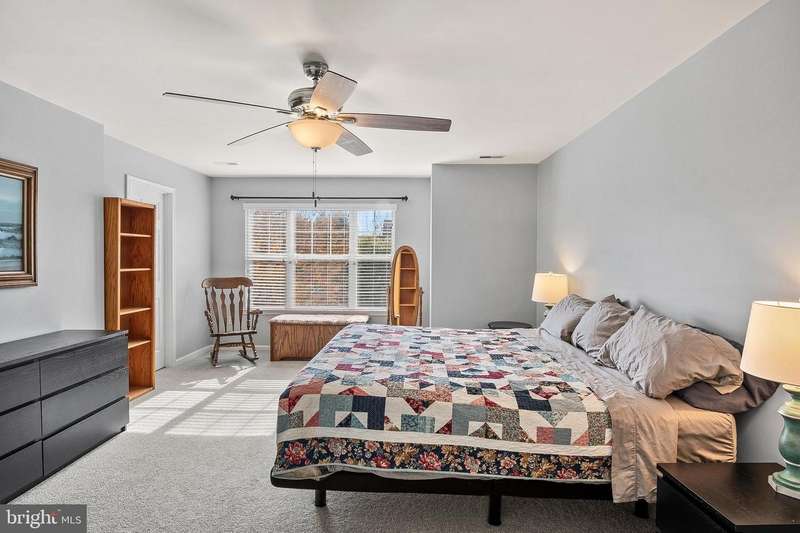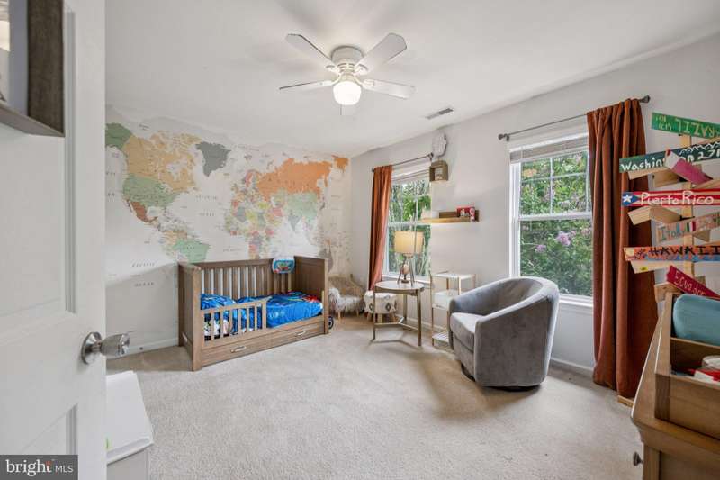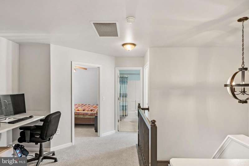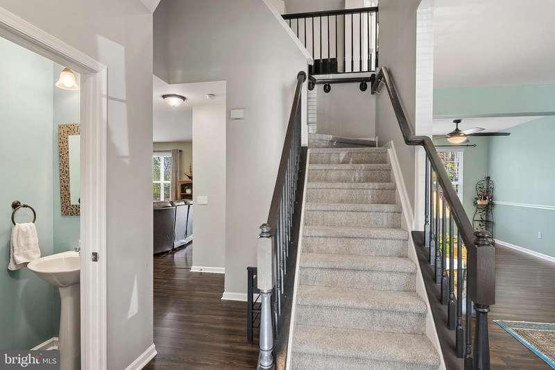 Beautiful 4 bedroom, 2.5 bath, 3 level Colonial located in the subdivision of Daniels Purchase. This home features main level hardwoods, eat-in kitchen with newer appliances and granite countertops opening to a spacious family room with slider to rear yard. Formal dining room with chair rail, living room, guest bath and mud room round out the main level. Upper level offers new carpet (2024), 4 bedrooms including primary bedroom with walk-in closet and primary bath (remodeled 2021) with dual vanities, separate soaking tub and walk-in shower. Three additional bedrooms and additional full bath plus laundry room and open loft space for desk (could be enclosed for closet) complete the upper level. Basement level provides large recreation room including built in brick bar plus additional office/den/potential bedroom with built in shelves for storage. Rear yard is fully fences and features a patio perfect for entertaining and raised flower beds along the back fence. Rain gutters with leaf protectors replaced in 2020. Two car attached garage (new insulated garage door 2022), new roof 2023 and solar panels with assumable lease.