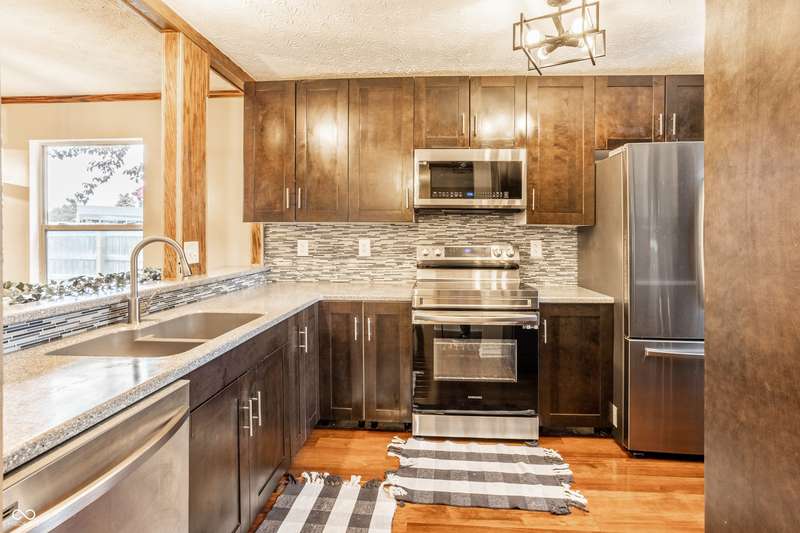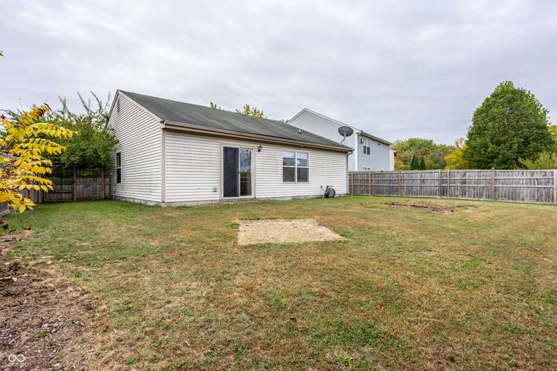GREAT LOCATION: Make this 3 bedroom, 2 full bath ranch your own and enjoy great highway access to downtown Indianapolis, Chicago, and everywhere else via I-465! Lots of additional cabinetry highlights the stylish kitchen and a custom bookcase gently separates living and dining spaces. The backyard has a complete, sturdy privacy fence to let the sun in and any noise out. Behind is a community pond, cared for by the association, so there is lots of distance between you and your back yard neighbor. Newly painted interior doors and new paint elsewhere brightens this lovely home. Stop by soon!