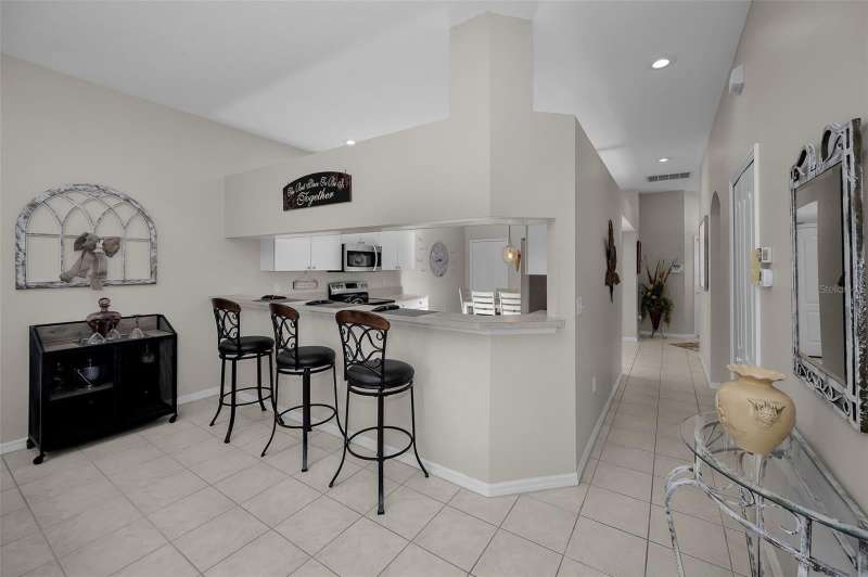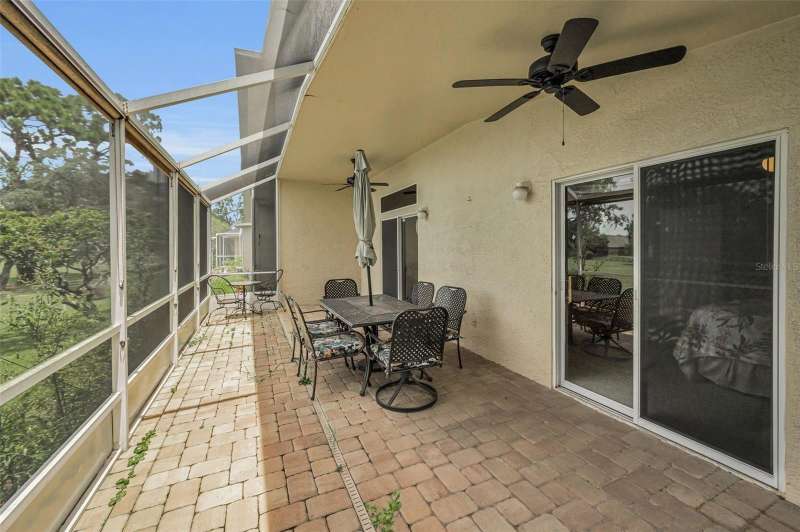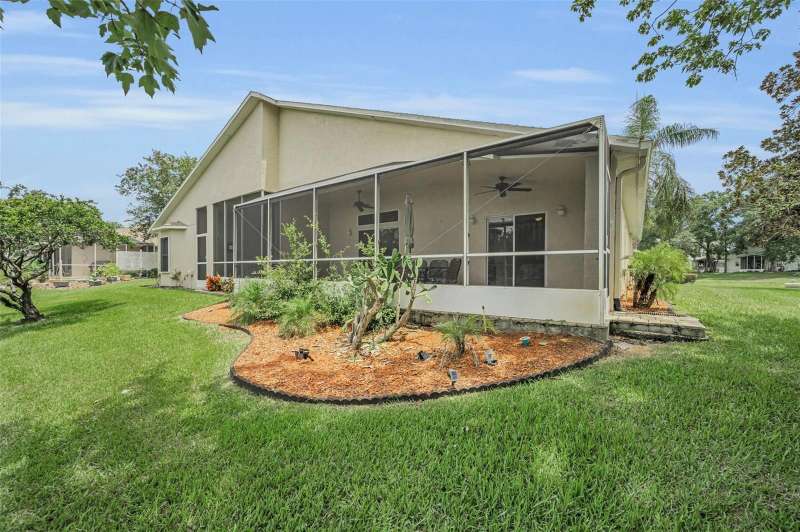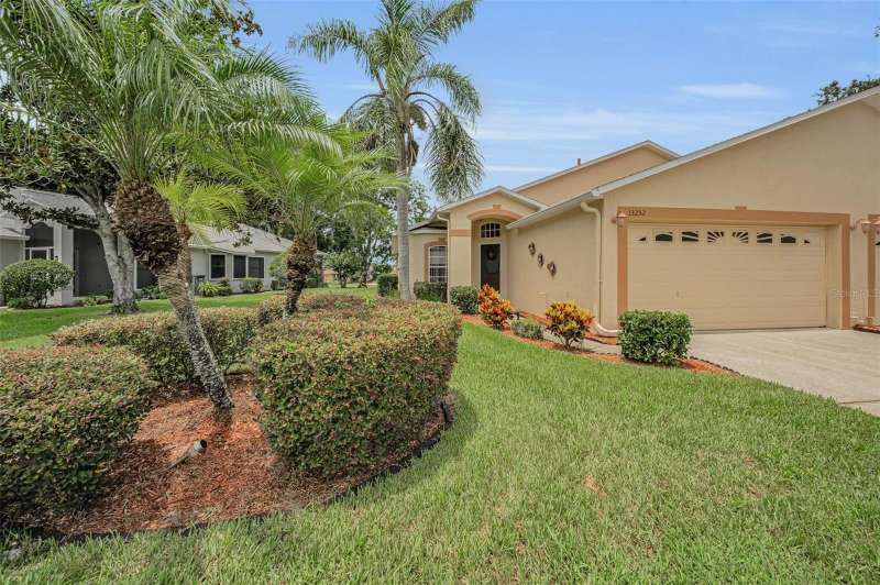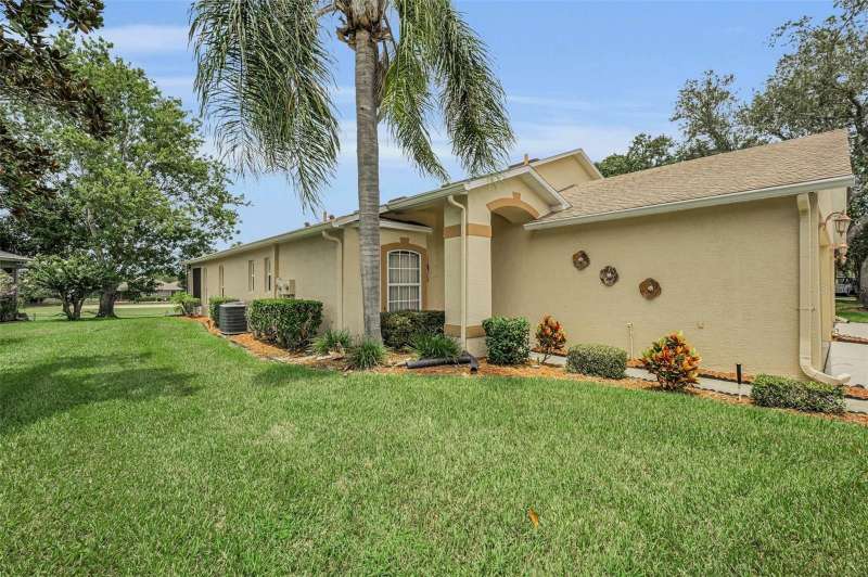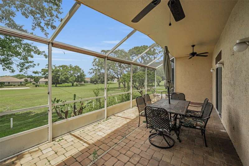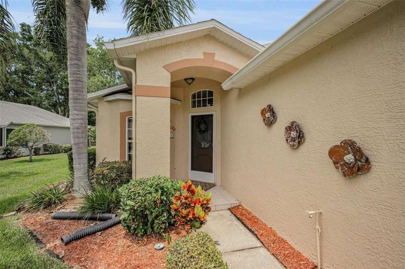 Best value in the neighborhood with easy, LOW-MAINTENANCE living, LOW HOA fees, and NO FLOOD ZONE! Enjoy this spacious 2 bedroom, 2 bathroom villa with 1,265 square feet of living space, high ceilings, and a 2-car garage! This one-owner home is located in the beautiful Meadow Oaks Golf Community where golf carts and pets are allowed! All ages are welcome - this is NOT a 55+ community. This well-maintained home features an open layout, stainless steel appliances, a walk-in closet in the primary suite, and an en-suite bathroom with a linen closet for added convenience. Offered fully furnished if desired, the home includes an expansive covered and screened patio with blinds and paver flooring, perfect for relaxing or entertaining while enjoying peaceful views of the 14th hole on the community’s public 18-hole golf course that has a pro shop and restaurant. Additional updates include a hot water heater in February of 2025, Roof in 2018, and an A/C unit in 2016. The community offers a wide range of amenities including a clubhouse with a fitness center, billiards, library, and meeting room, as well as outdoor features like a heated pool, tennis, pickleball, basketball, shuffleboard, and bocce ball - perfect for staying active and social. This prime location is close to restaurants, shopping, and medical facilities for everyday ease and is only 34 miles from Tampa International Airport. It is also just 9 miles to the beautiful SunWest Park Beach. This property is also close to some of Florida’s most beautiful natural attractions: just 17 miles to Weeki Wachee State Park, where you can explore the deepest known freshwater cave system in the country and enjoy live mermaid shows; 44 miles to Homosassa Springs State Park, known for its crystal-clear river, springs, and manatees; and only 51 miles to the award-winning white sands of Clearwater Beach. Whether you're looking for a full-time residence or a seasonal getaway, this villa combines comfort, lifestyle, and location in one incredible package.
