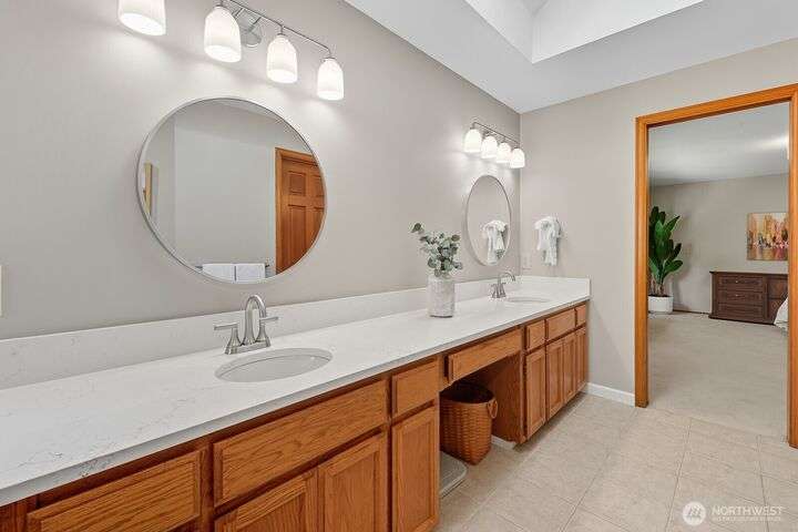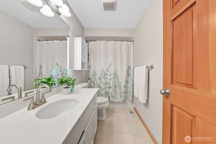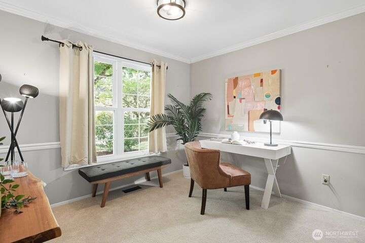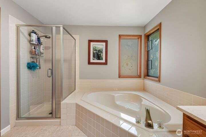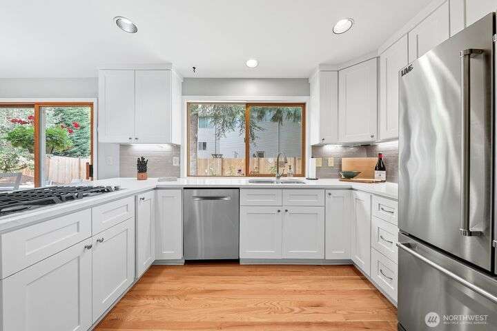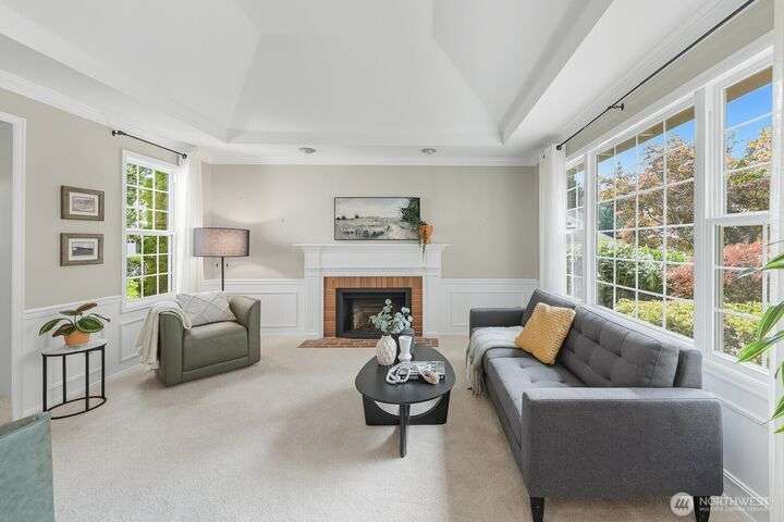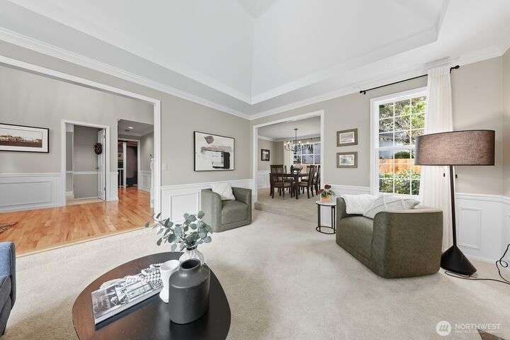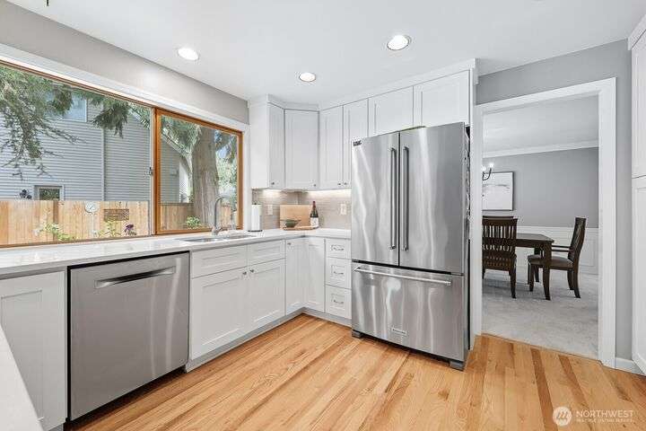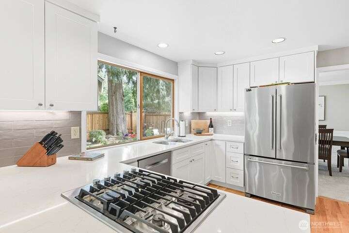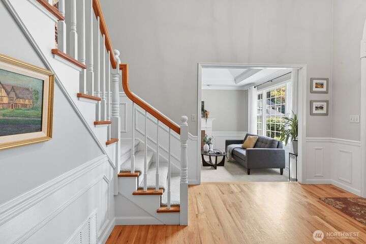 Welcome home to this meticulously maintained Buchan home in Sammamish! Offering a timeless floor plan with formal living & dining rooms, a beautifully remodeled kitchen, and a versatile main-floor bedroom/office. The inviting family room with fireplace is perfect for gatherings or everyday living. Upstairs you’ll find an oversized primary suite w/walk-in closet & updated ensuite plus 2 additional bedrooms. All bathrooms have new quartz countertops & updated fixtures. This floor plan has a rare bonus room providing endless options: gym, media room, or potential ADU! Ample storage, 2-car garage & A/C. Fully fenced corner lot showcases mature landscaping & even an apple tree! Close to parks & top-rated schools, this is Sammamish at its best!