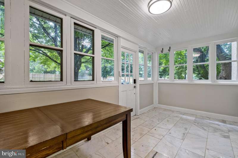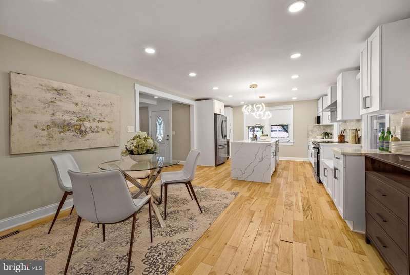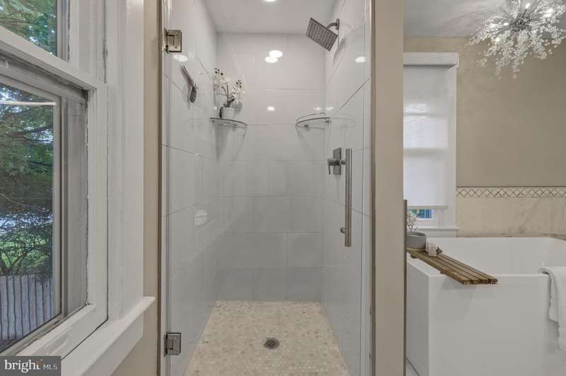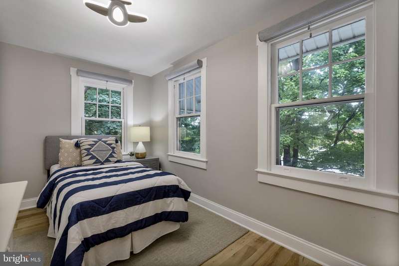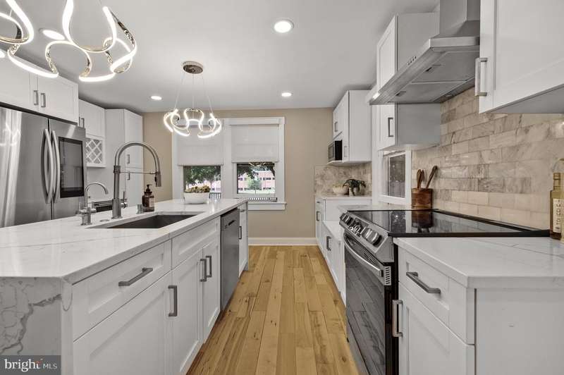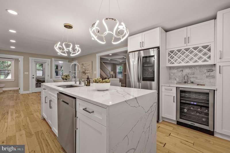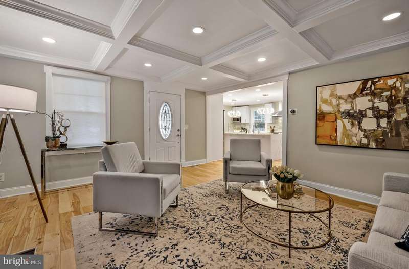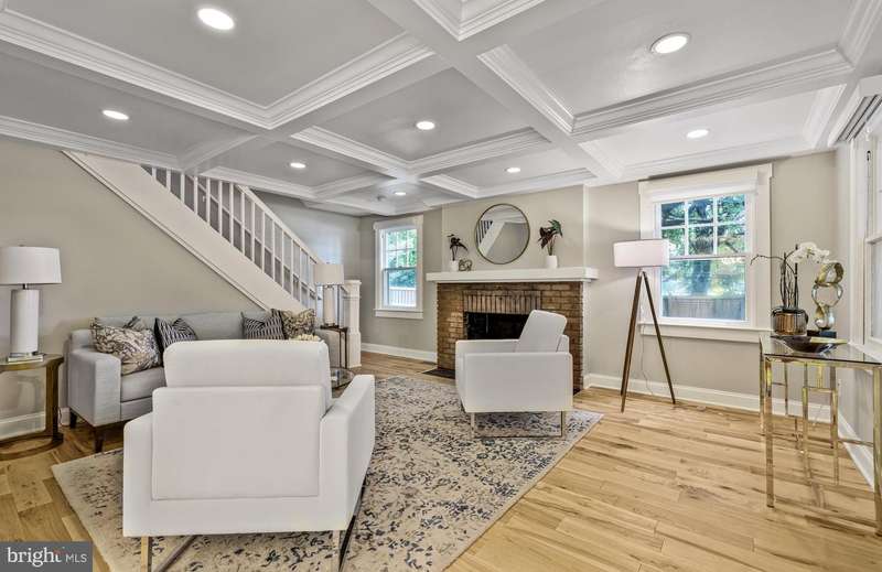 Beautifully updated 1920s Colonial ideally positioned on a spacious corner lot in the heart of Rockville. A welcoming porch sets the tone for the warm and inviting interior, where gorgeous flooring flows throughout. The main level features an open-concept layout with a formal living room accented by a coffered ceiling and a fireplace with brick surround and classic wood mantel. The gourmet eat-in kitchen boasts quartz countertops, a tiled backsplash, filter water and instant hot at the kitchen sink, stainless steel appliances including a wine refrigerator, and a large island with waterfall sides and two striking pendant lights above. A built-in bench with hidden storage adds charm and functionality. A stylish powder room with a full stone-tiled accent wall and a rear porch overlooking the backyard completes this level. Upstairs offers three generously sized bedrooms and two beautifully renovated full baths, including a stunning primary suite with double vanity, soaking tub, and separate shower with glass door. The fully finished lower level provides flexible living space with a large rec room and an additional room perfect for a guest bedroom or office, along with a full bathroom. An extended driveway offers ample off-street parking. Very large fenced yard with playground. House has been updated to make for easy and comfortable living. Storm windows installed since windows are historic, nest thermostat and fenced yard Ideally located just minutes to the shops and restaurants of downtown Rockville, the Rockville Swim & Fitness Center, I-270, Rockville Pike, and the Metro Red Line. * Please note: Square footage is estimated and calculated by an independent third party; information is deemed accurate but not guaranteed.