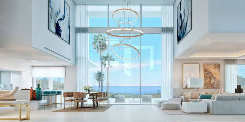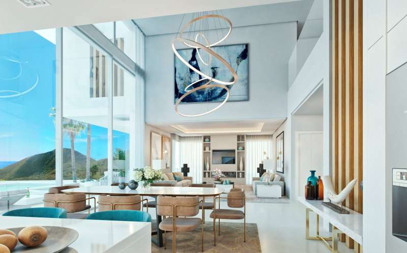 The luxury villas have four different designs allowing for customizable changes. In the exterior plan, there is a private pool in the landscaped gardens. The stylish design villas have spacious living areas with high ceilings and four or five bedrooms all with ensuite baths, in the interior design.